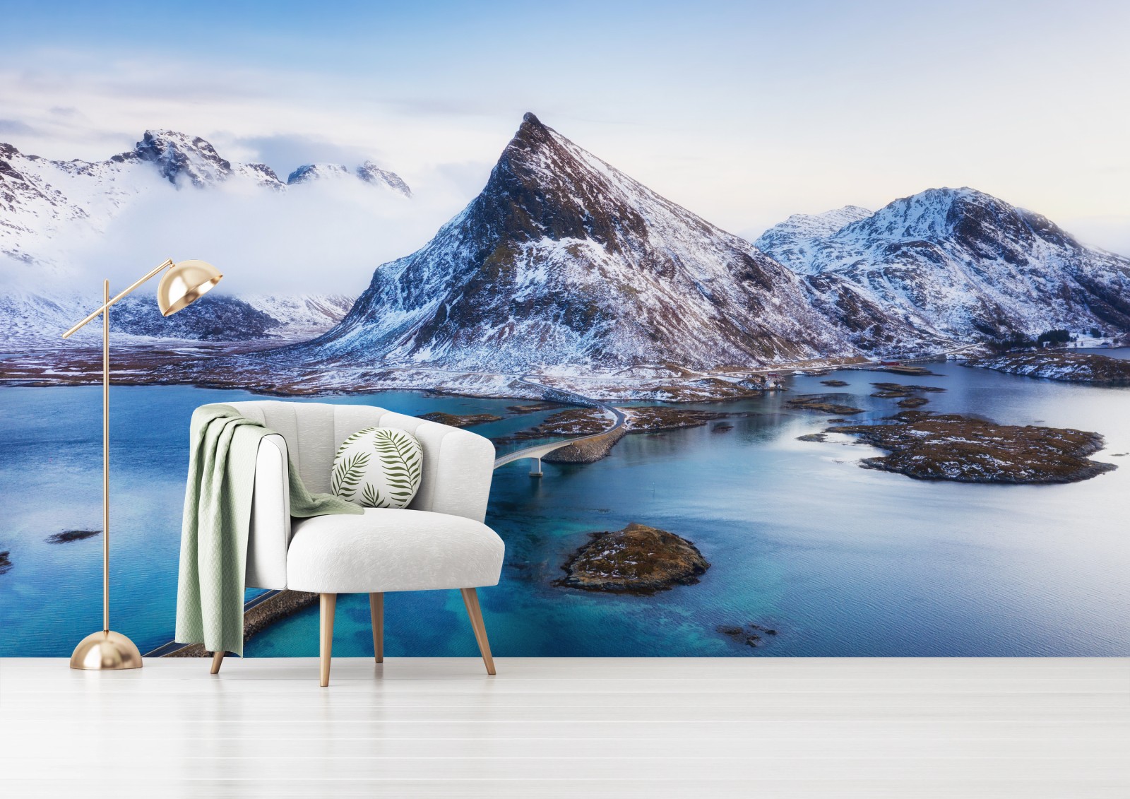 Fototapete Lofoten brücke und berg aus der luft