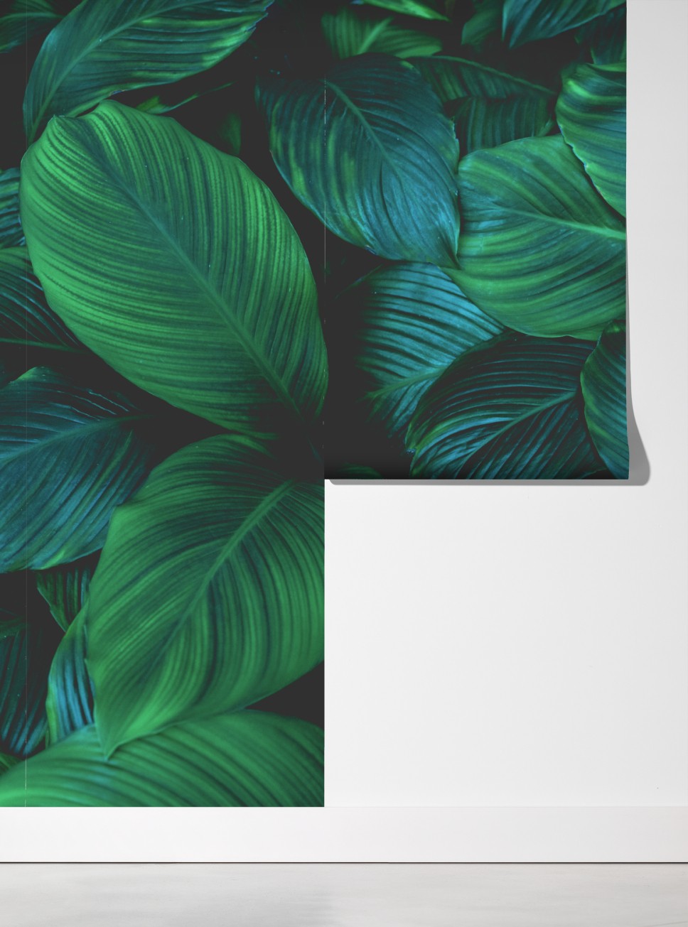 Bringen Sie ruhige tropische Atmosphäre in Ihr Zuhause mit satten, strukturierten grünen Blättern, die jedem Raum Tiefe und natürliche Schönheit verleihen.