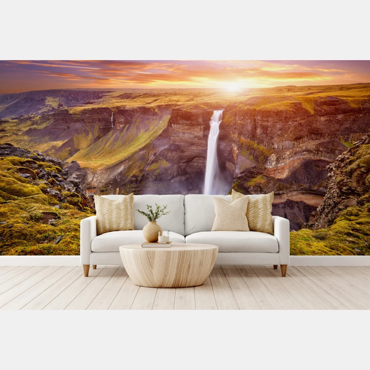 Fototapete Haifoss wasserfall bei sonnenuntergang