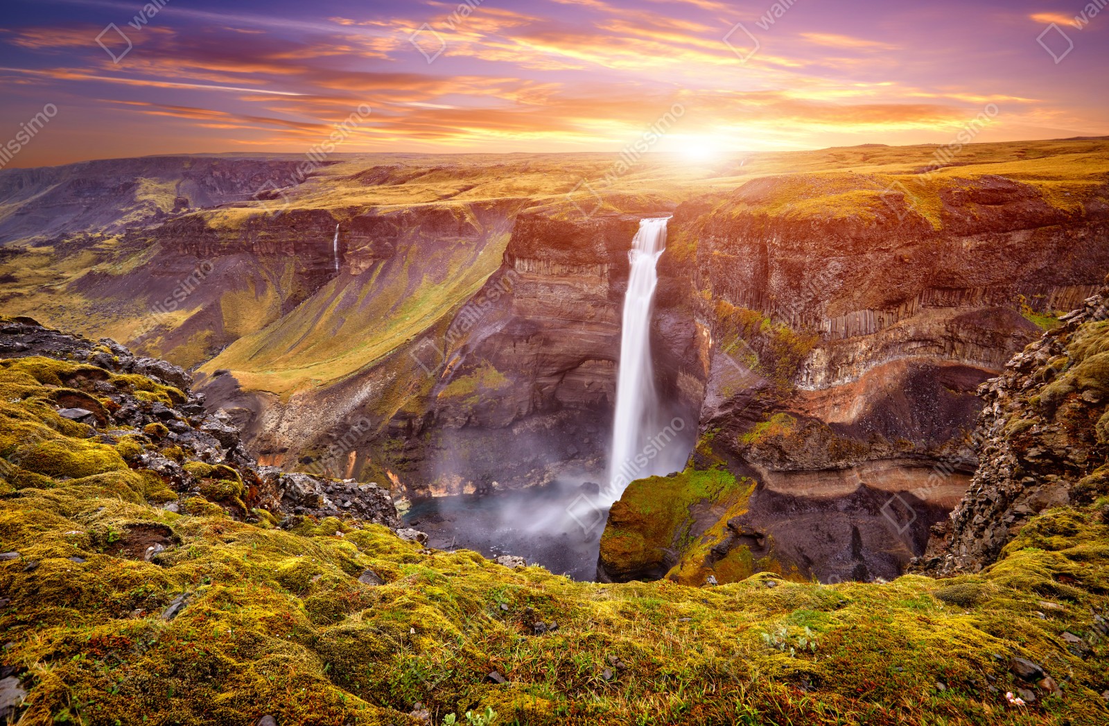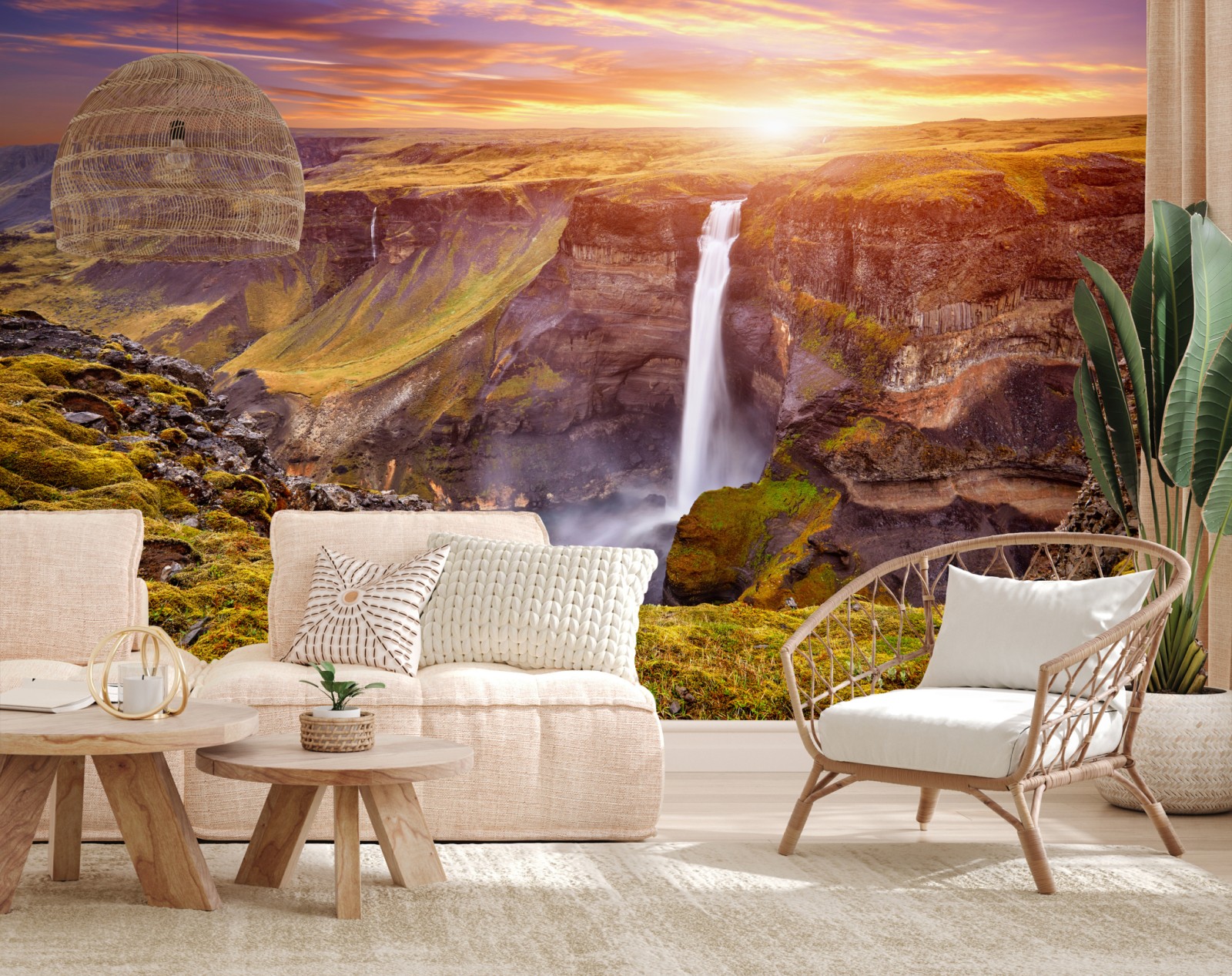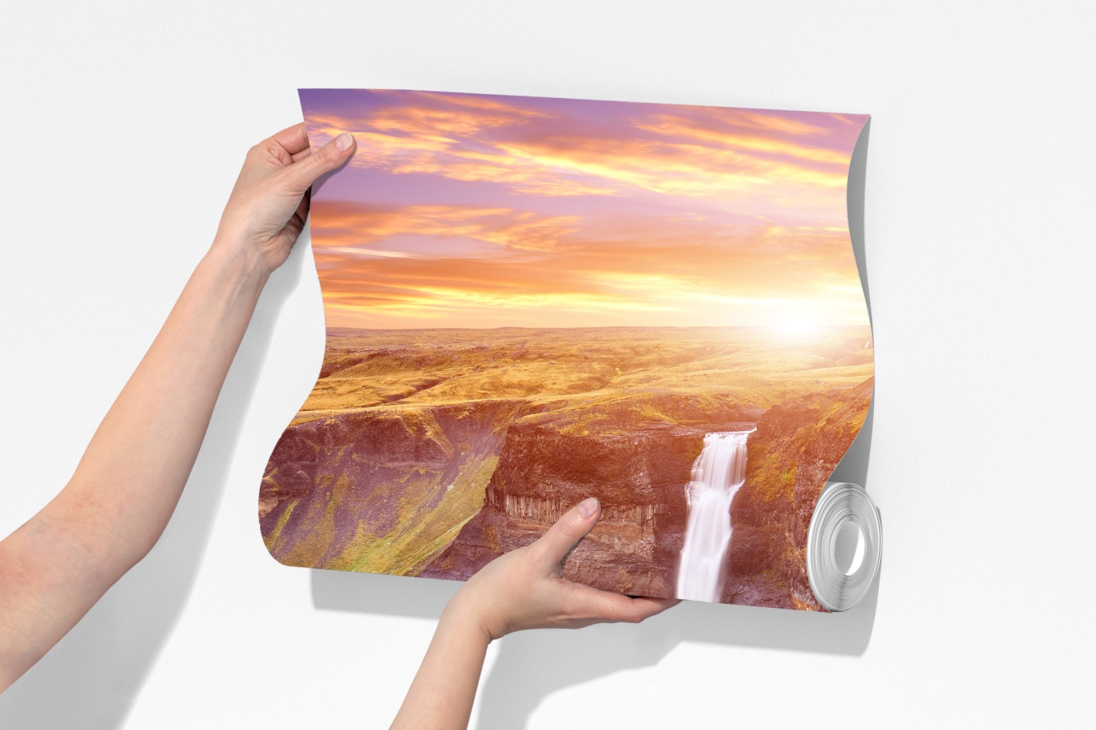 Fototapete Haifoss wasserfall bei sonnenuntergang
