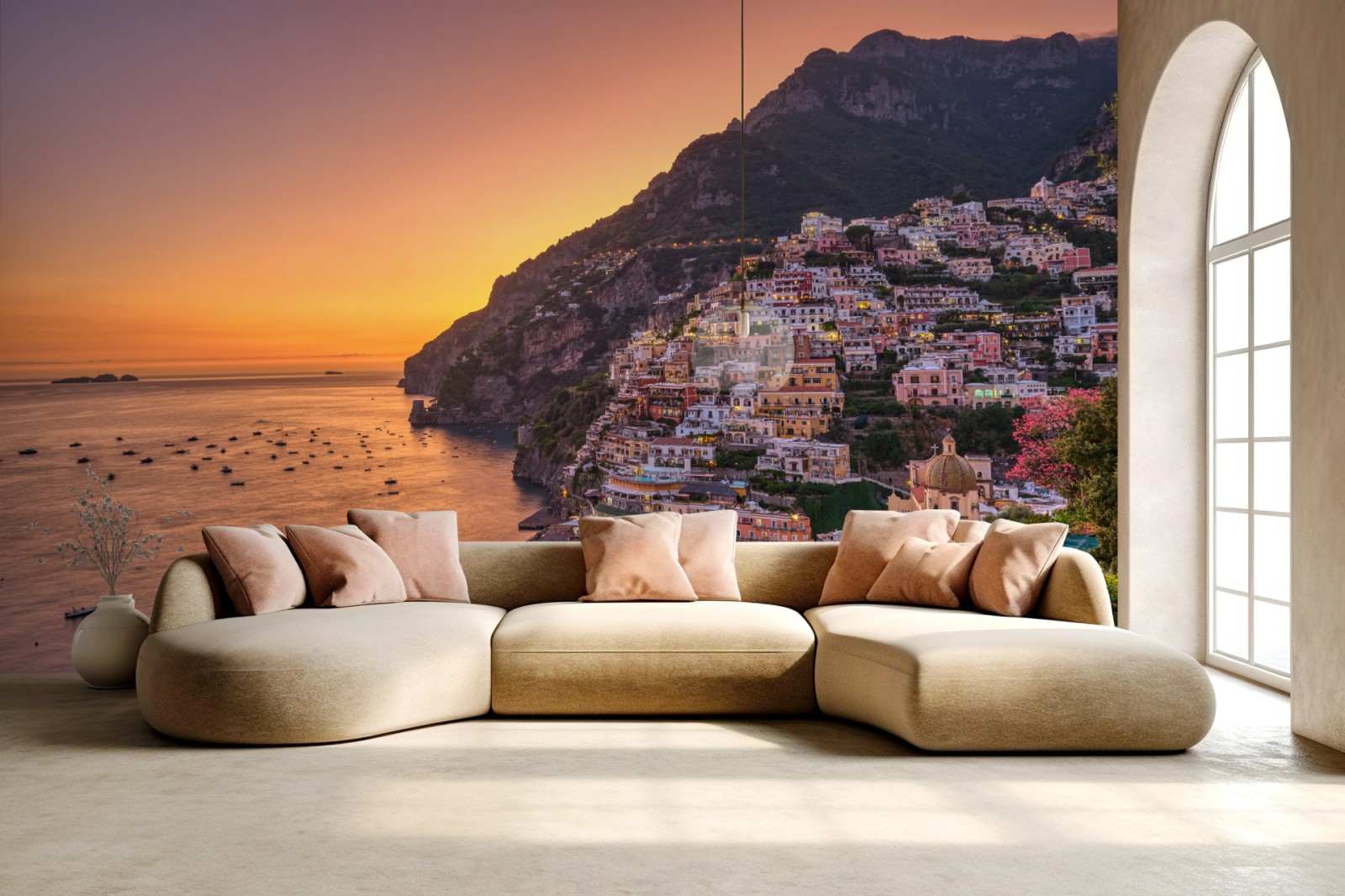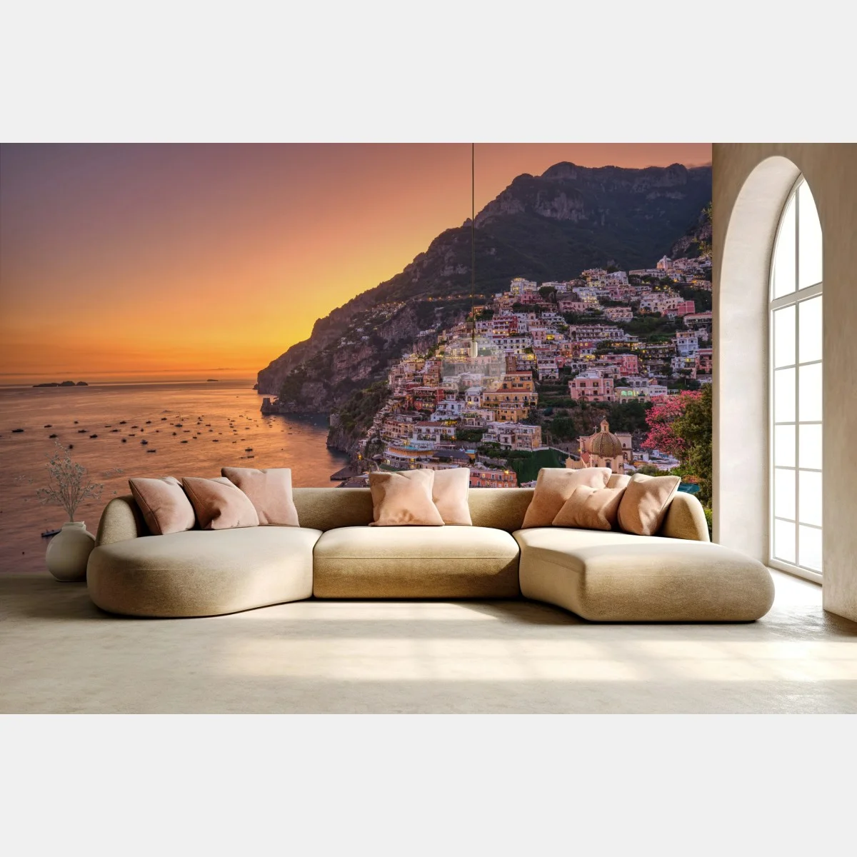 Fototapete Sonnenuntergang über Positano, Amalfiküste