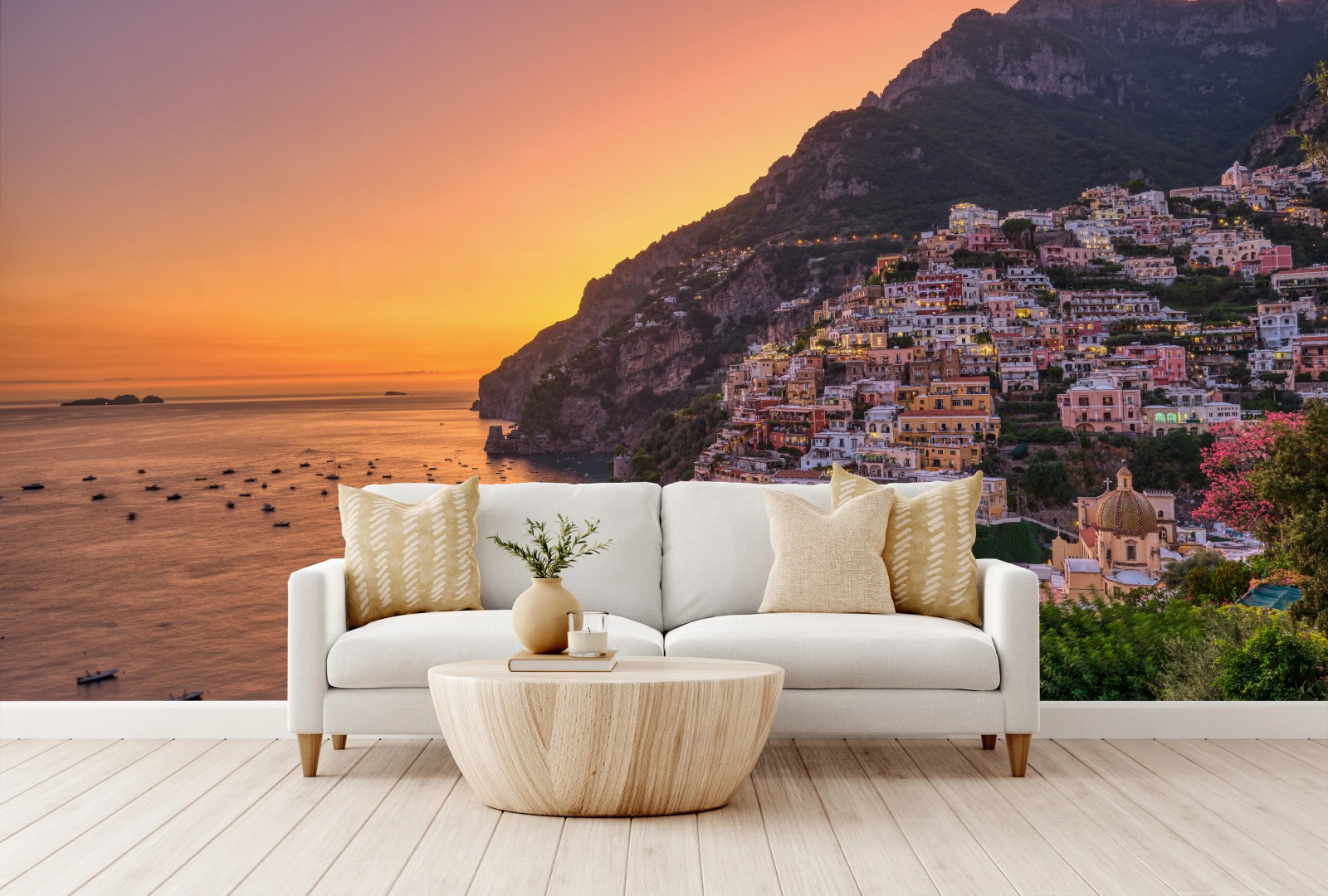 Fototapete Sonnenuntergang über Positano, Amalfiküste
