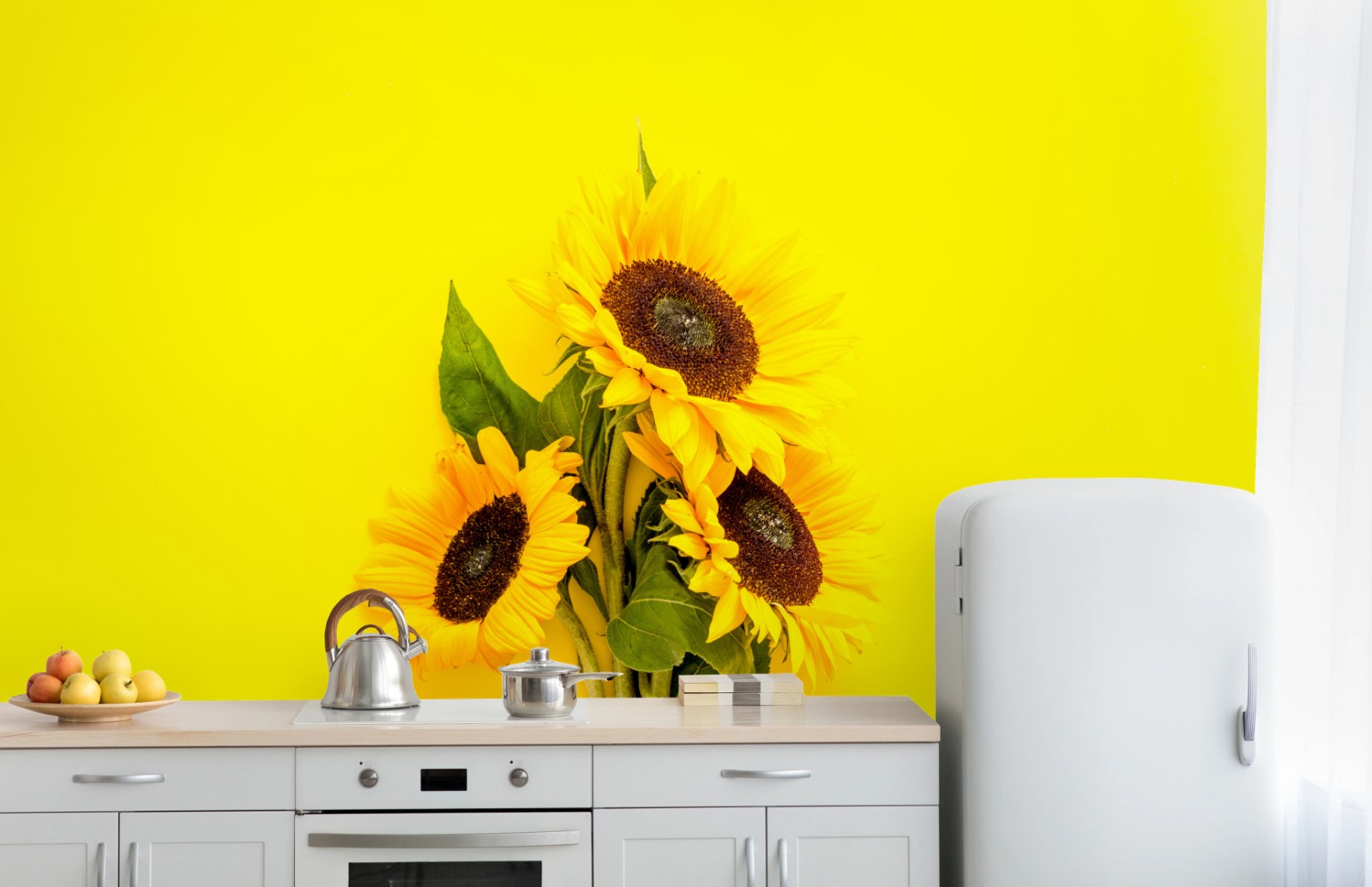Fototapete Leuchtender sonnenblumenstrauß auf gelbem hintergrund