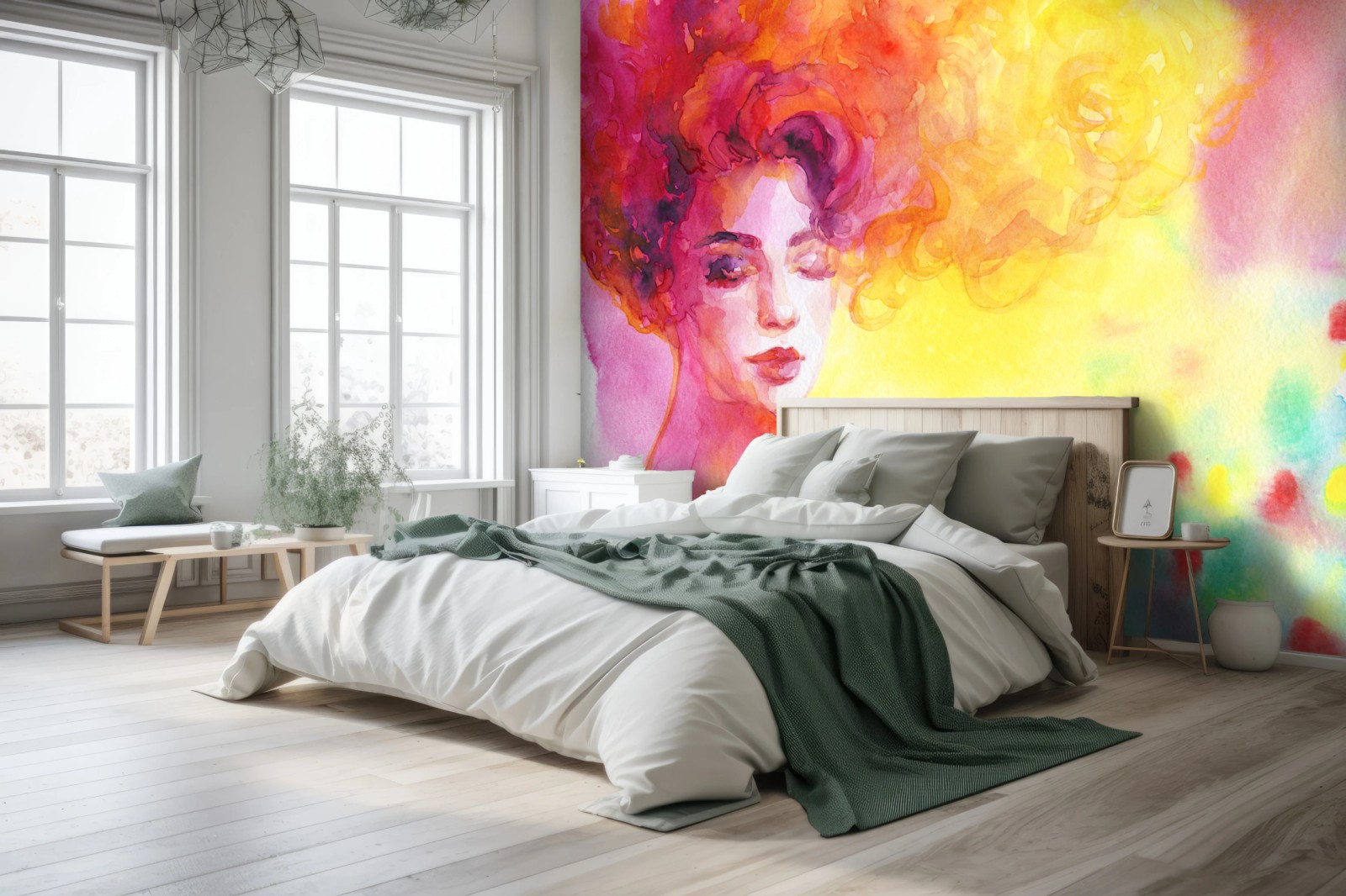 Fototapete Leuchtendes aquarellporträt einer frau