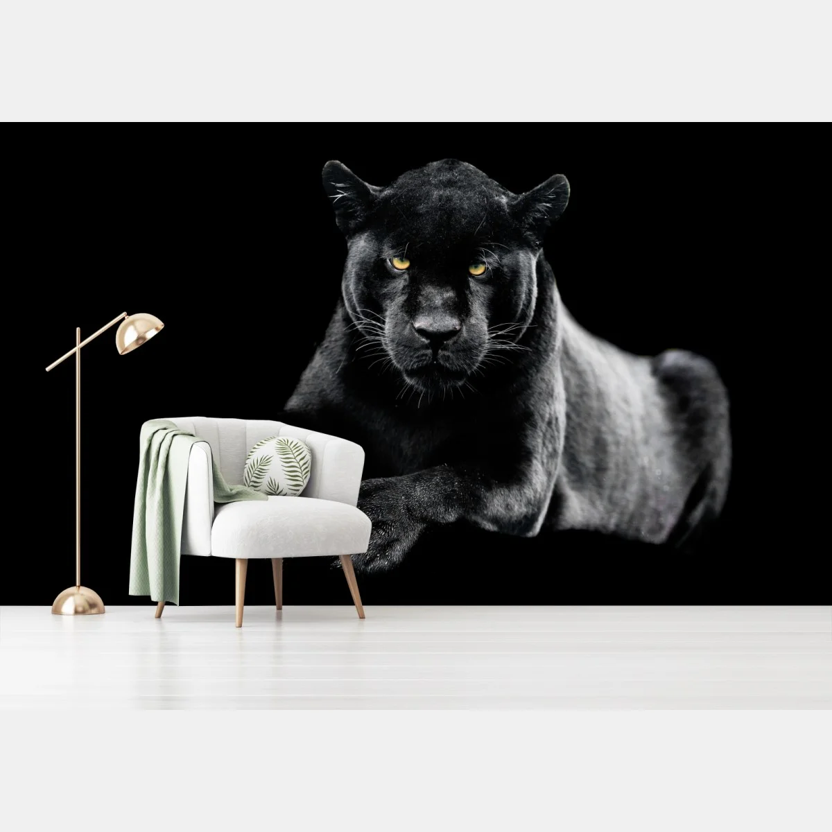 Fototapete Porträt eines schwarzen panthers vor schwarzem hintergrund