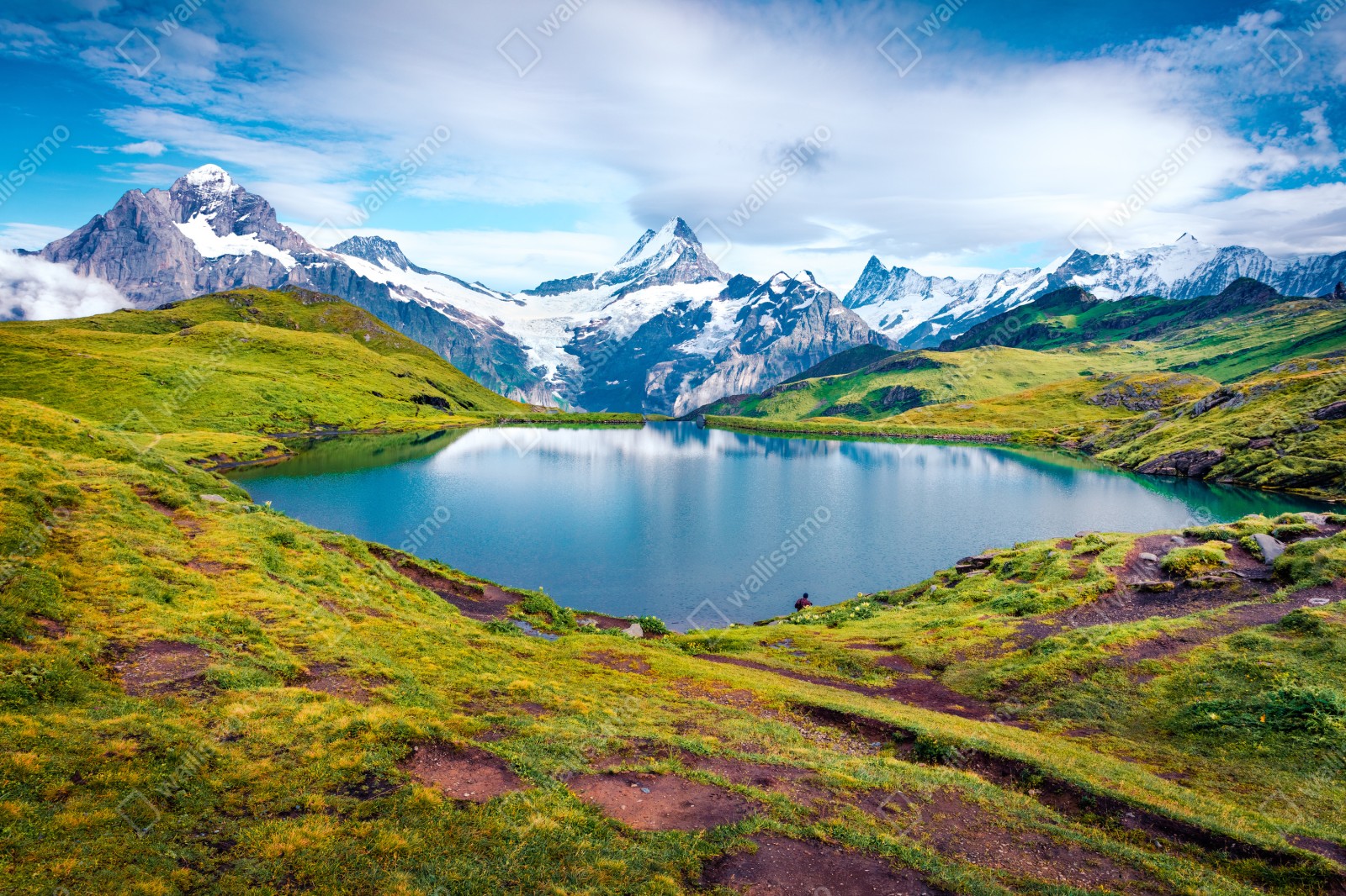 Fototapete ruhiger morgen am Bachalpsee, Schweiz – Wallnifity®