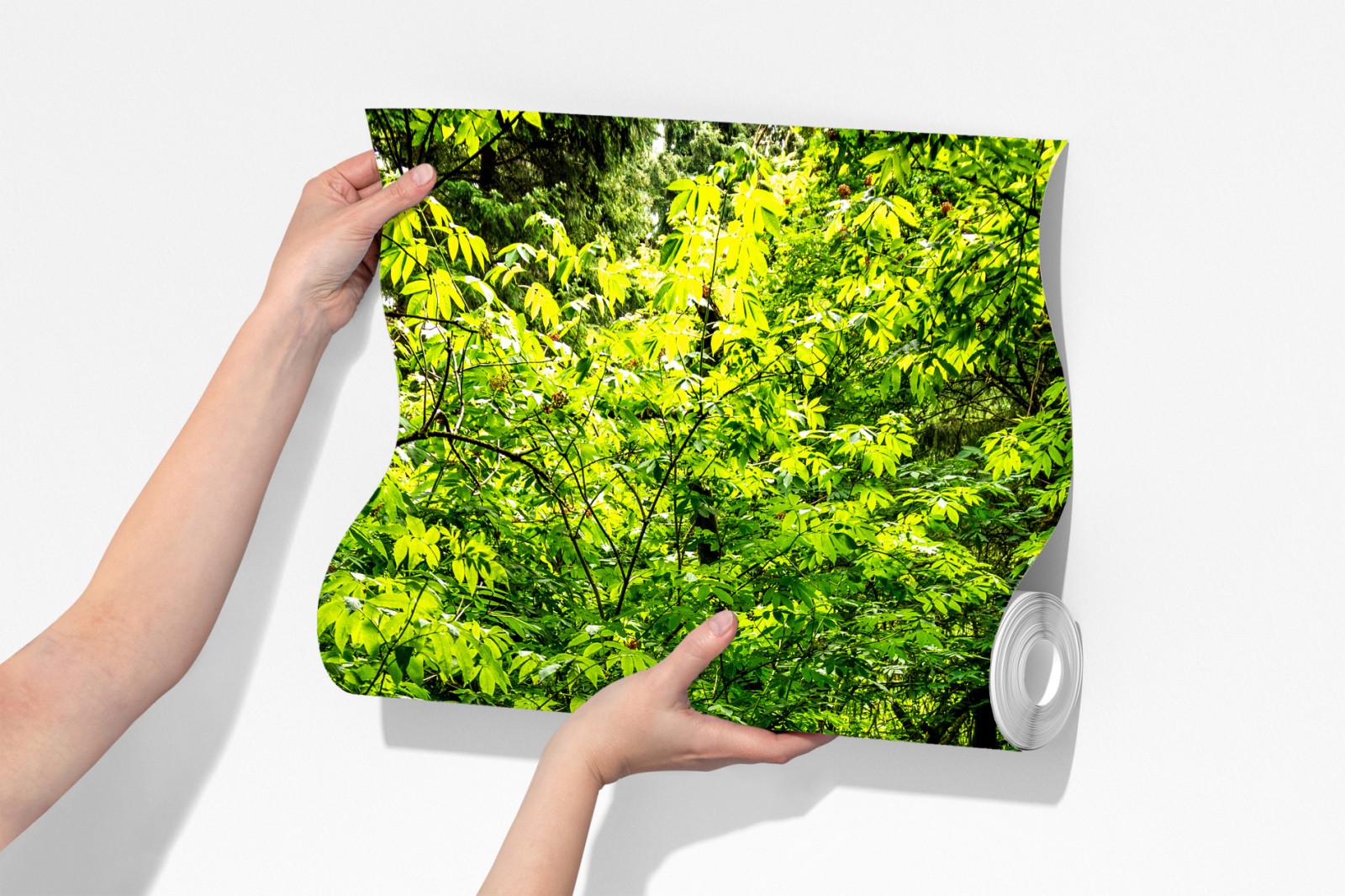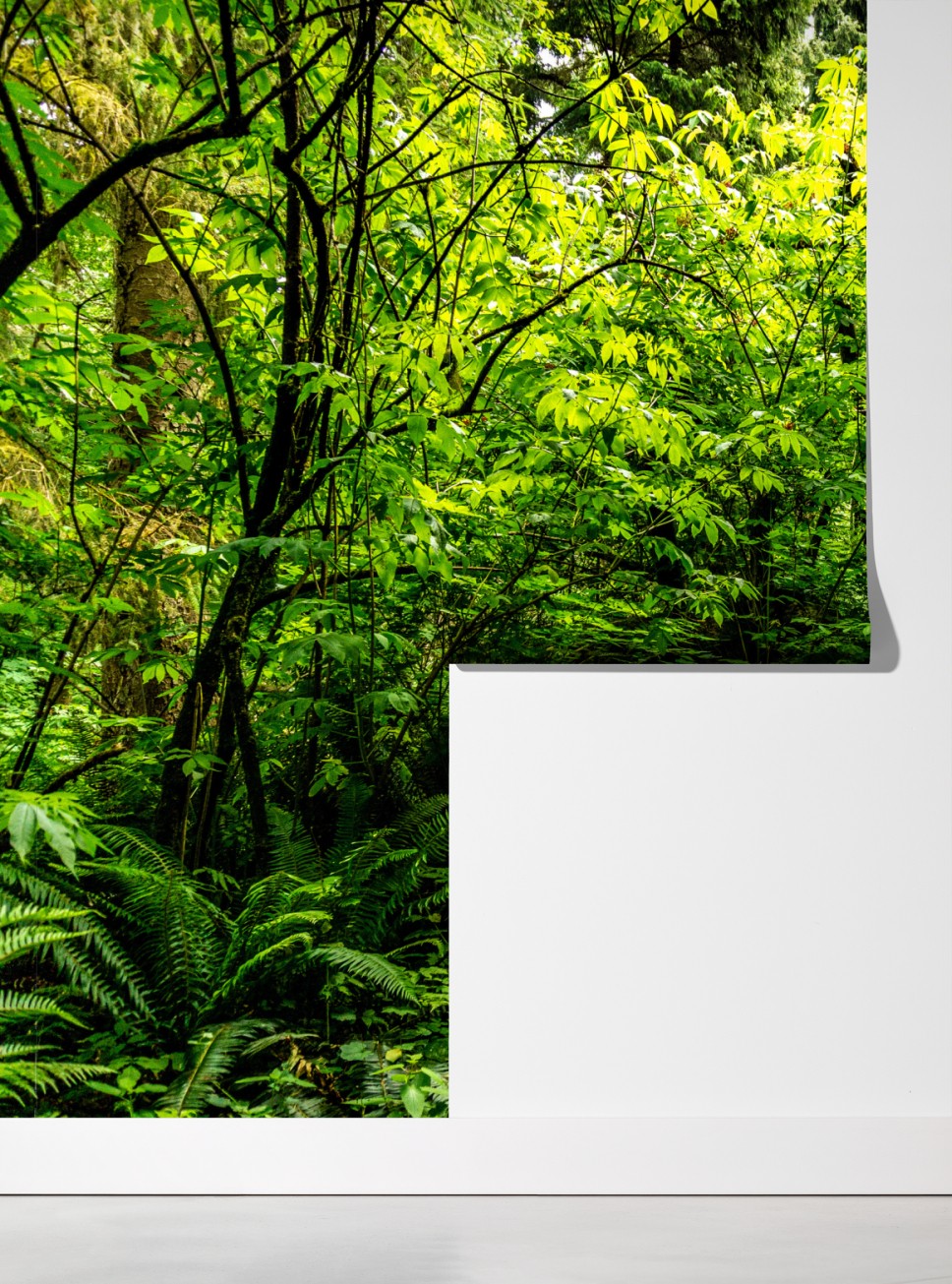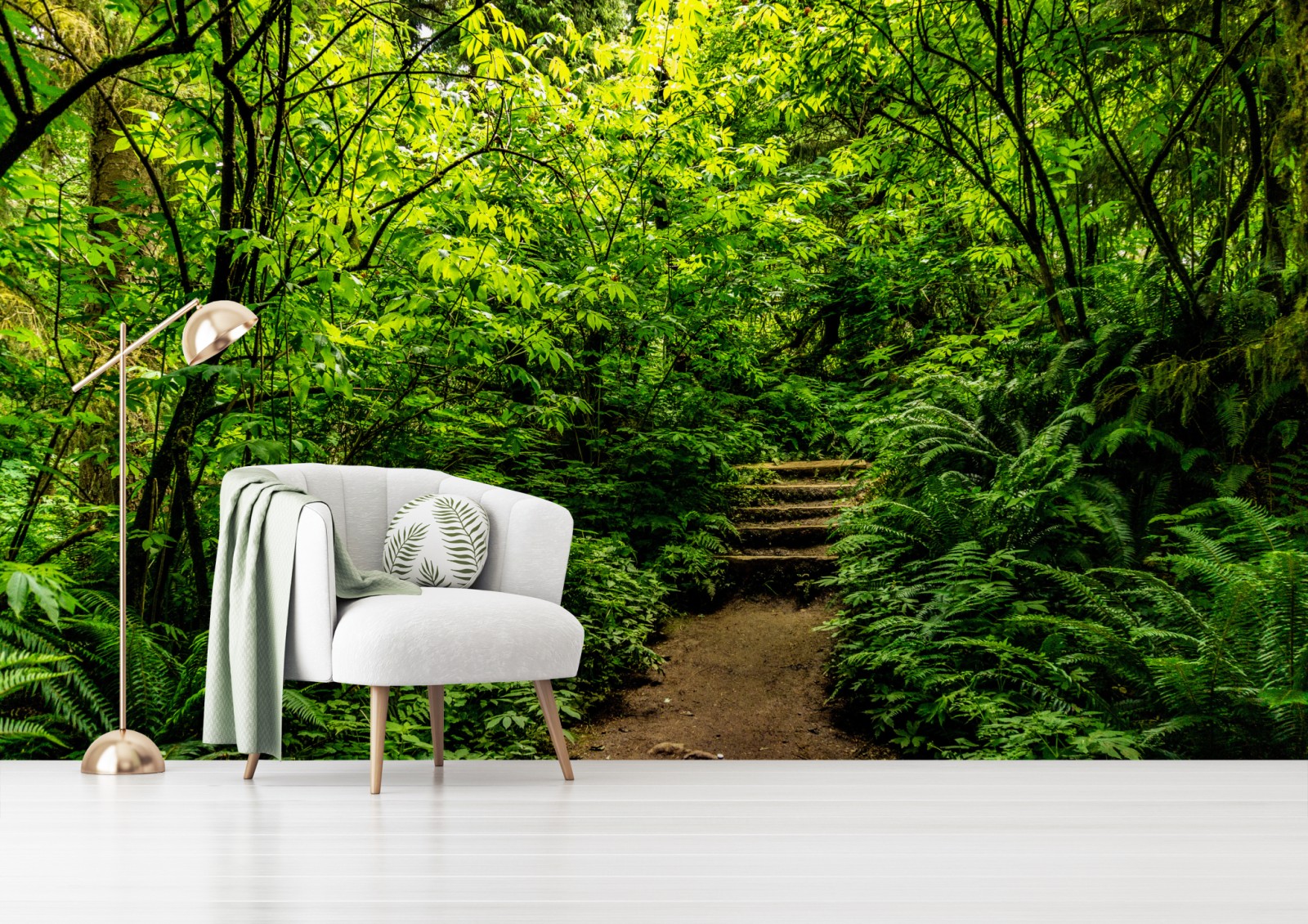 Bringen Sie die beruhigende Atmosphäre eines üppigen Waldes in Ihr Zuhause mit sattem Grün und einem einladenden Pfad.
