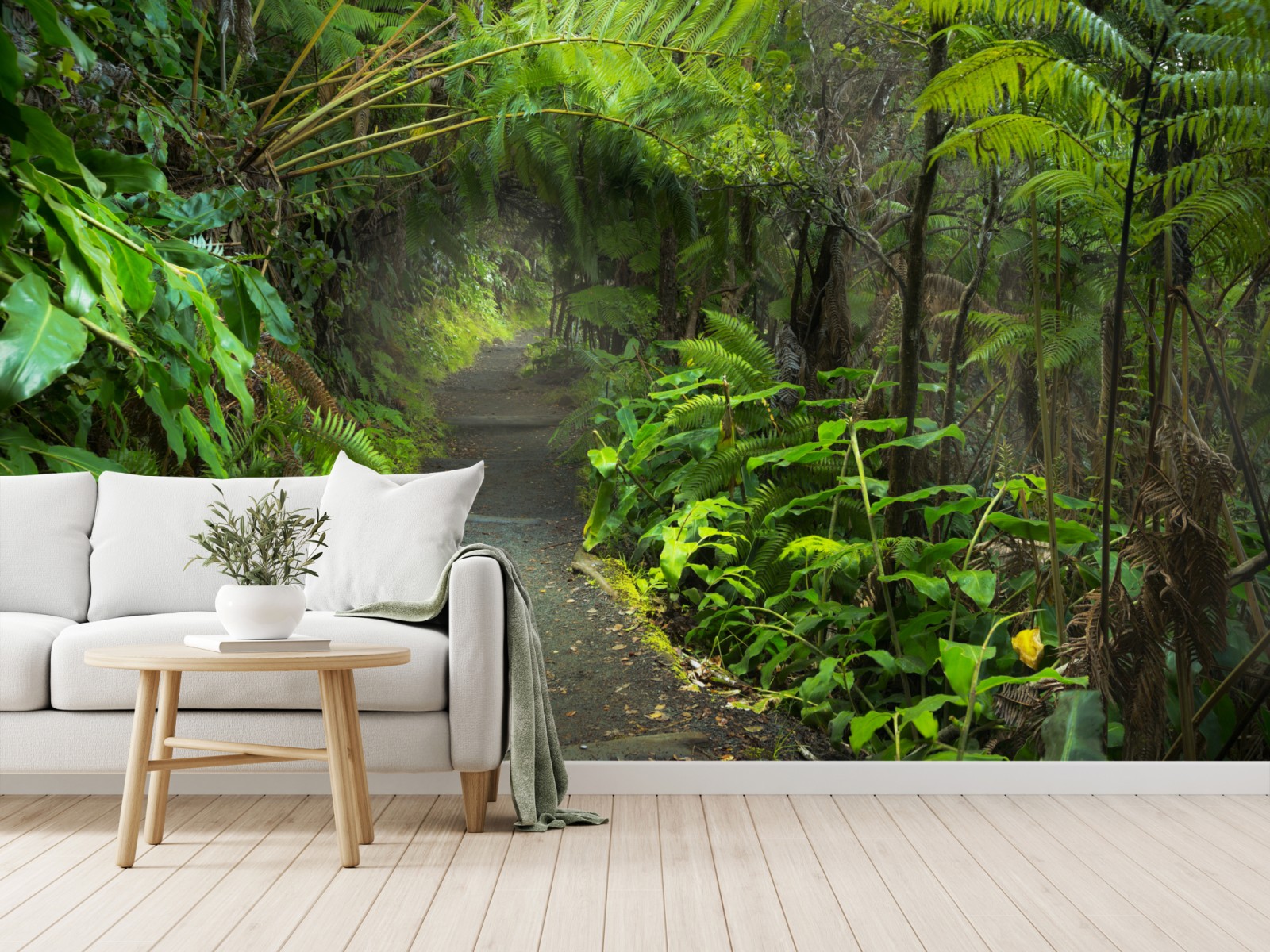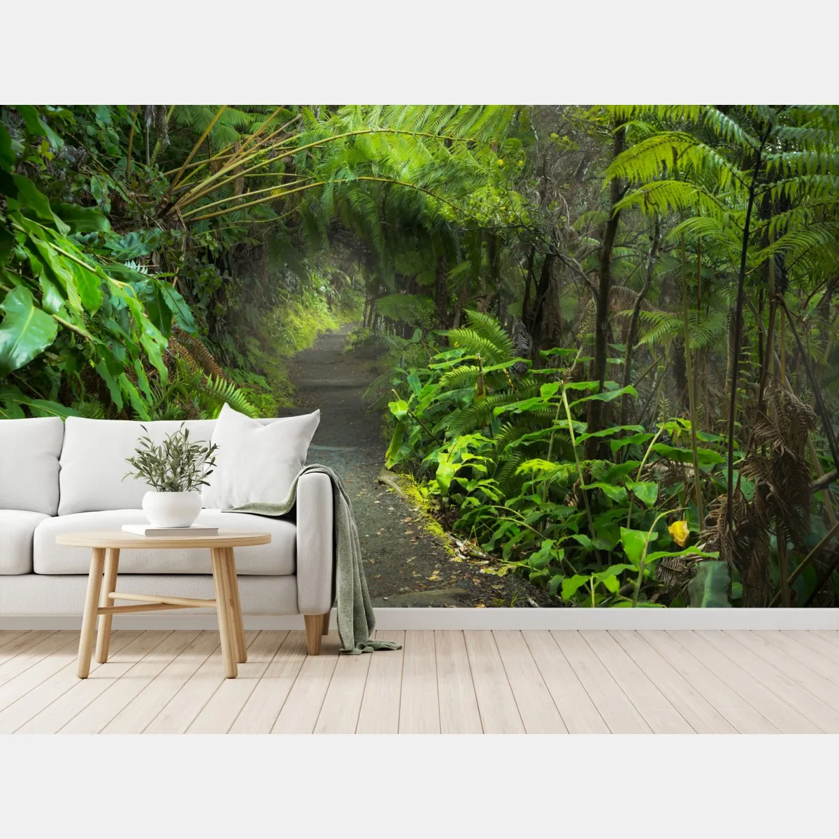 Bringen Sie die ruhige Atmosphäre des üppigen Regenwalds auf dem Kilauea Iki-Pfad auf Hawaii in Ihr Zuhause, mit lebendigen Grüntönen und beruhigender Tiefe.