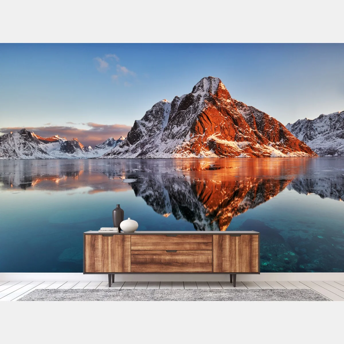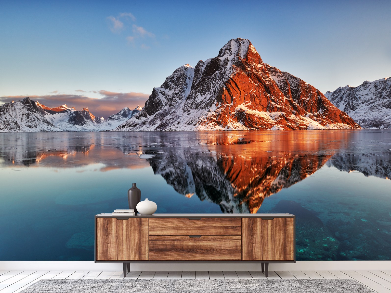 Fototapete Lofoten sonnenaufgang mit bergreflexion