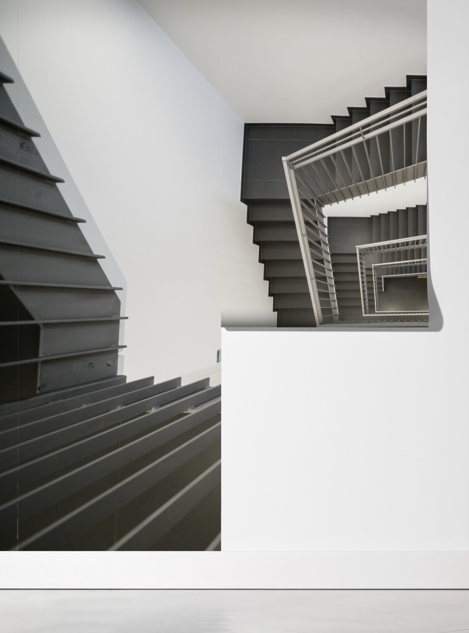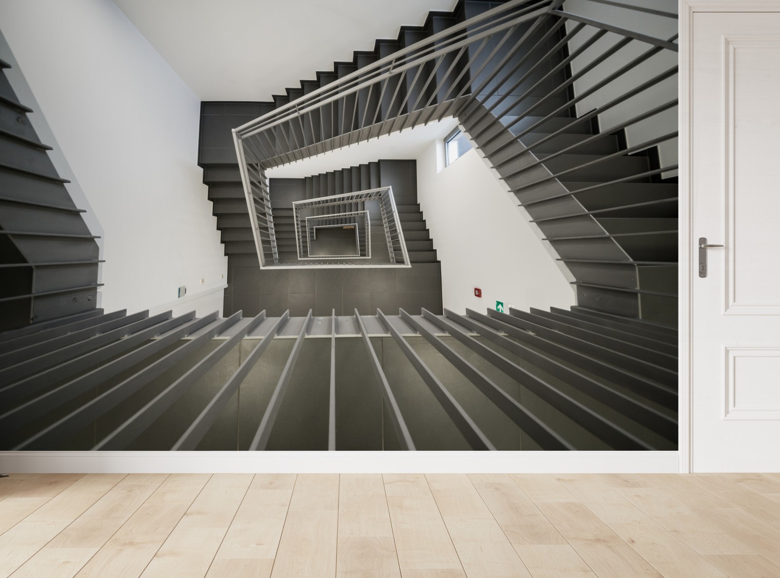 Verleihen Sie Ihrem Raum mit einem minimalistischen Treppenhausmotiv moderne, geometrische Tiefe und klare Linien.