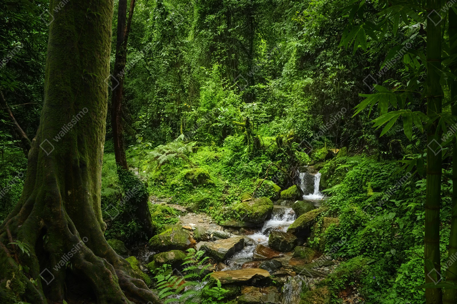 Fototapete üppiger grüner waldwasserfall – Wallnifity®