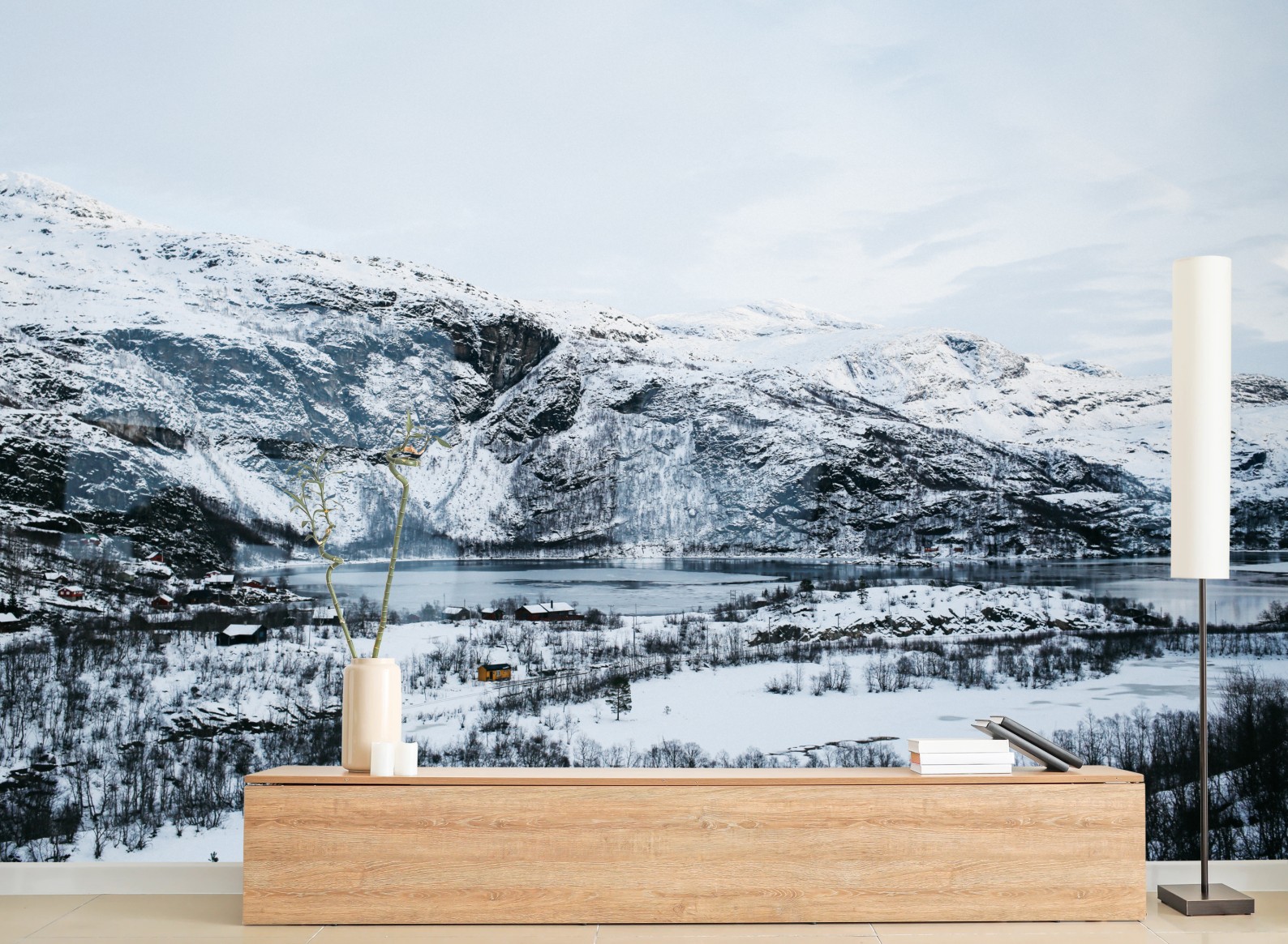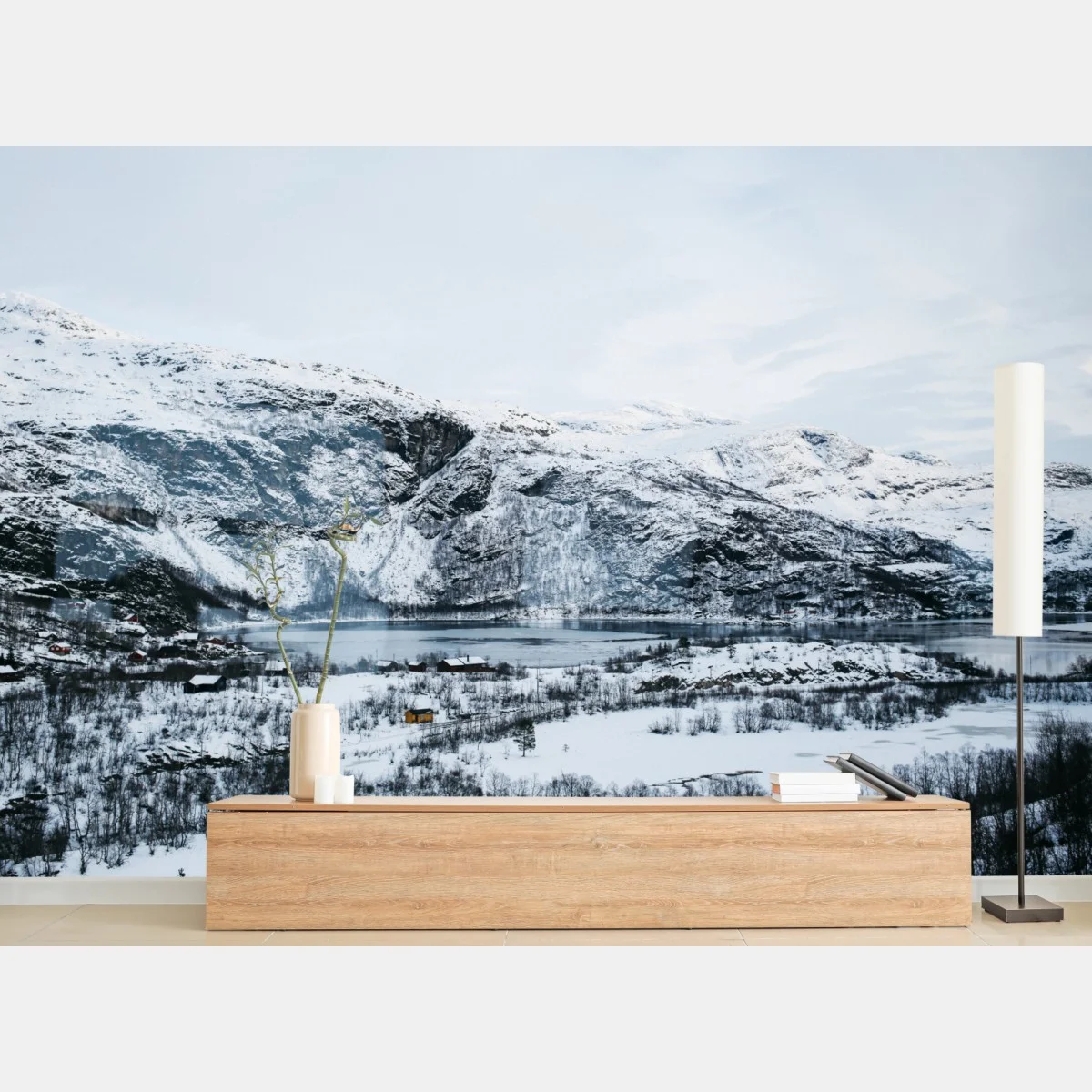 Fototapete Ruhige winterliche berglandschaft über zugefrorenem see