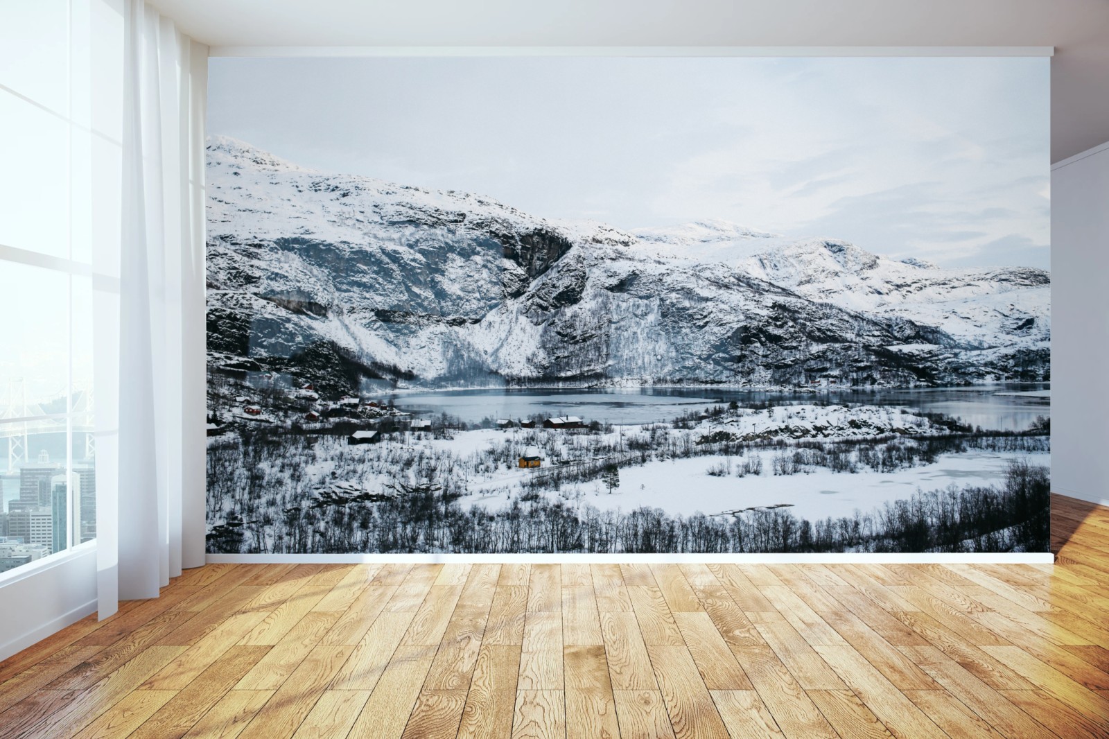 Fototapete Ruhige winterliche berglandschaft über zugefrorenem see