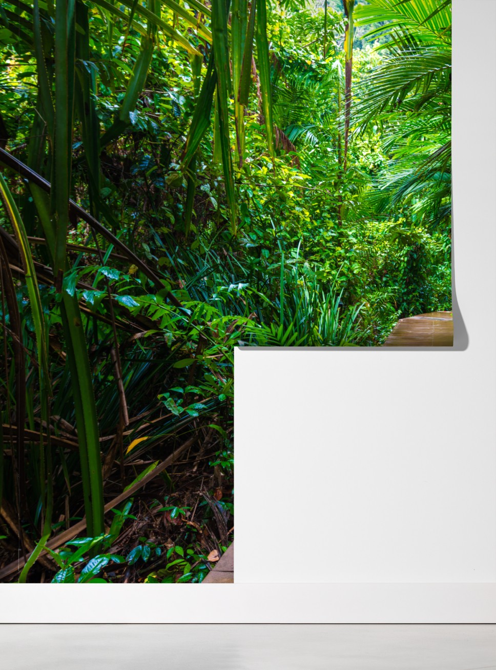 Bringen Sie die Ruhe eines üppigen Mangrovenstegs in Ihren Raum mit dieser lebendigen Naturszene, die zu Entspannung und Entdeckung einlädt.