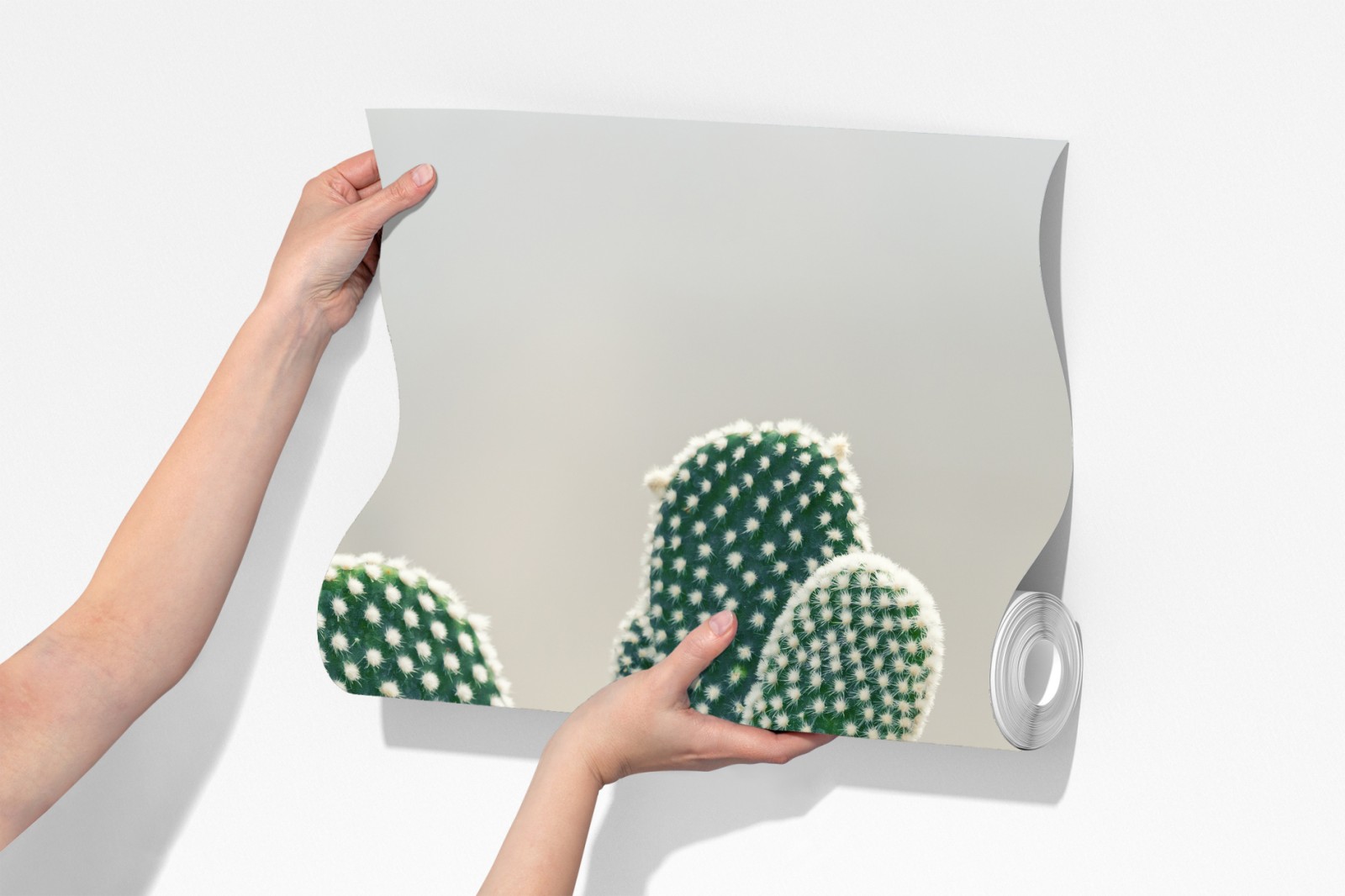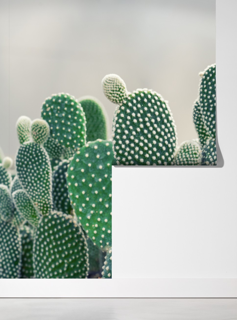 Bringen Sie ruhige Wüstenatmosphäre in Ihr Zuhause mit dieser detaillierten Nahaufnahme einer Opuntie, die ihre strukturierte Oberfläche und sanfte Farbtöne zeigt.