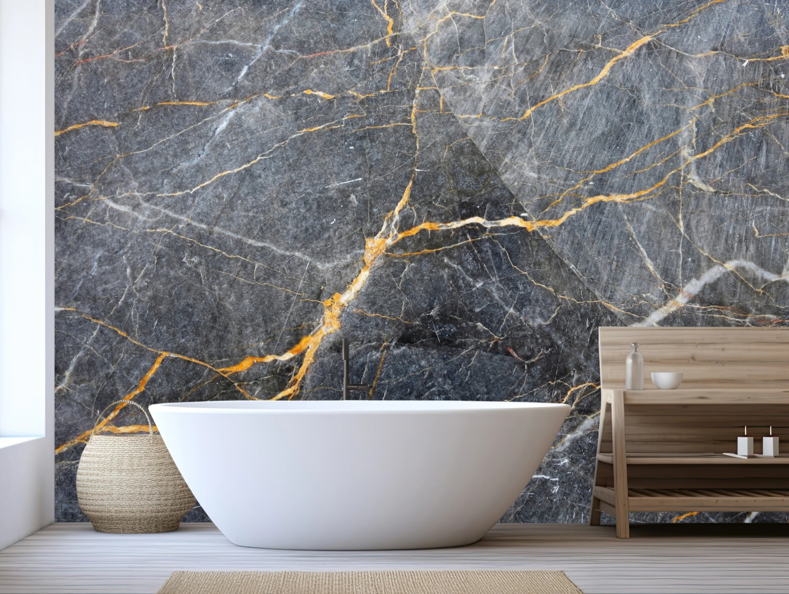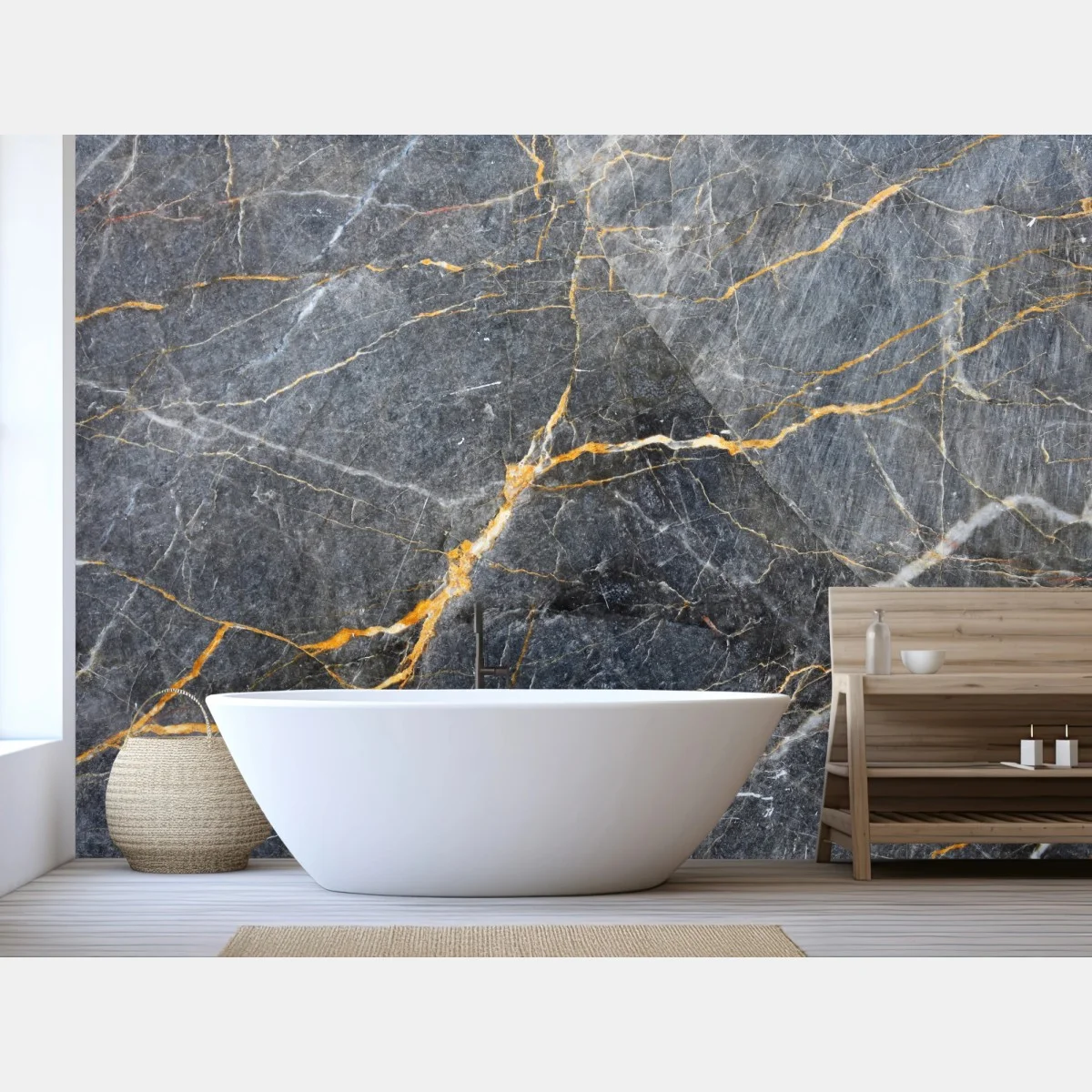 Fototapete Dunkelgrauer marmor mit goldenen adern