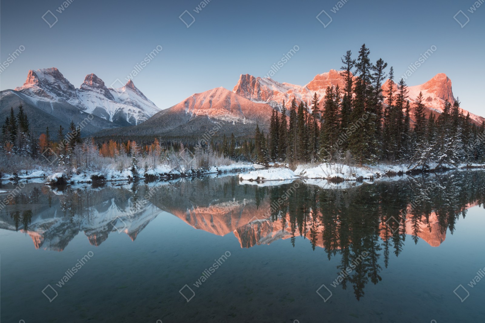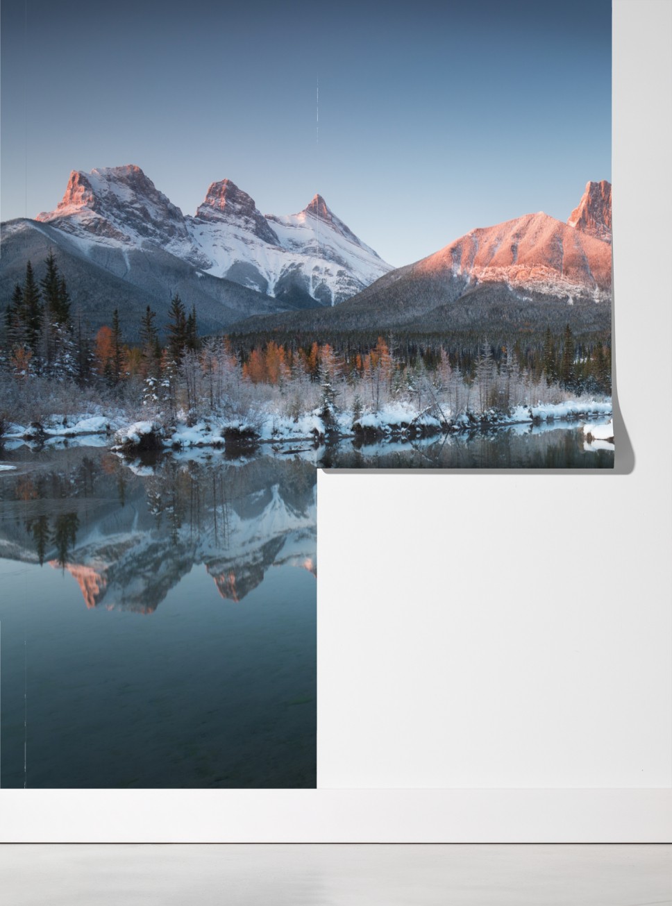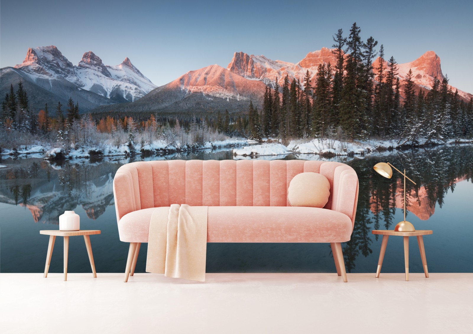 Fototapete bergspiegelung im morgendlichen glühen – Wallnifity®
