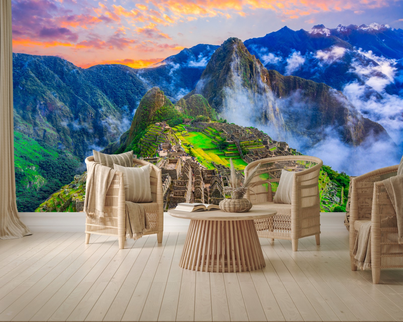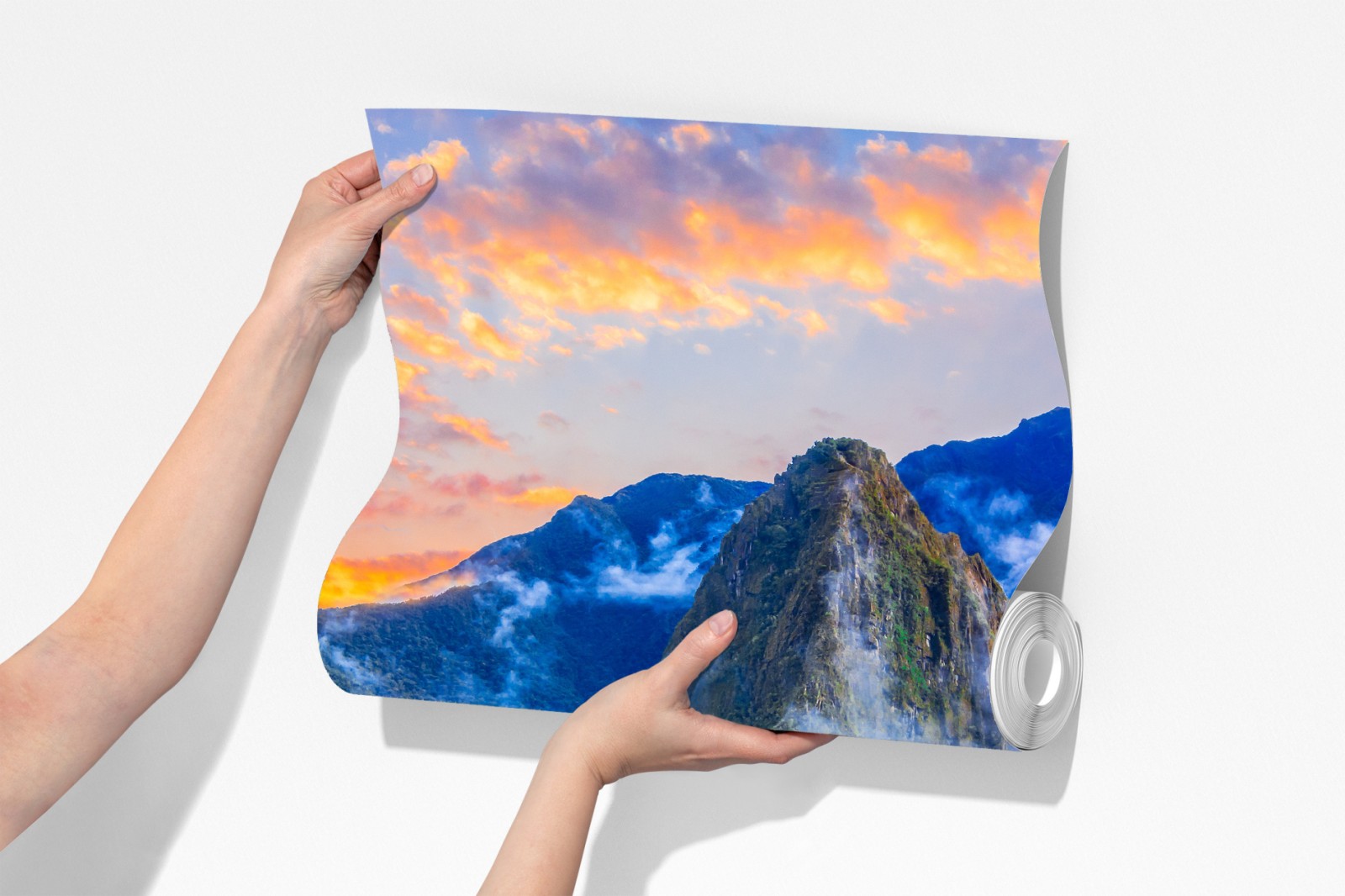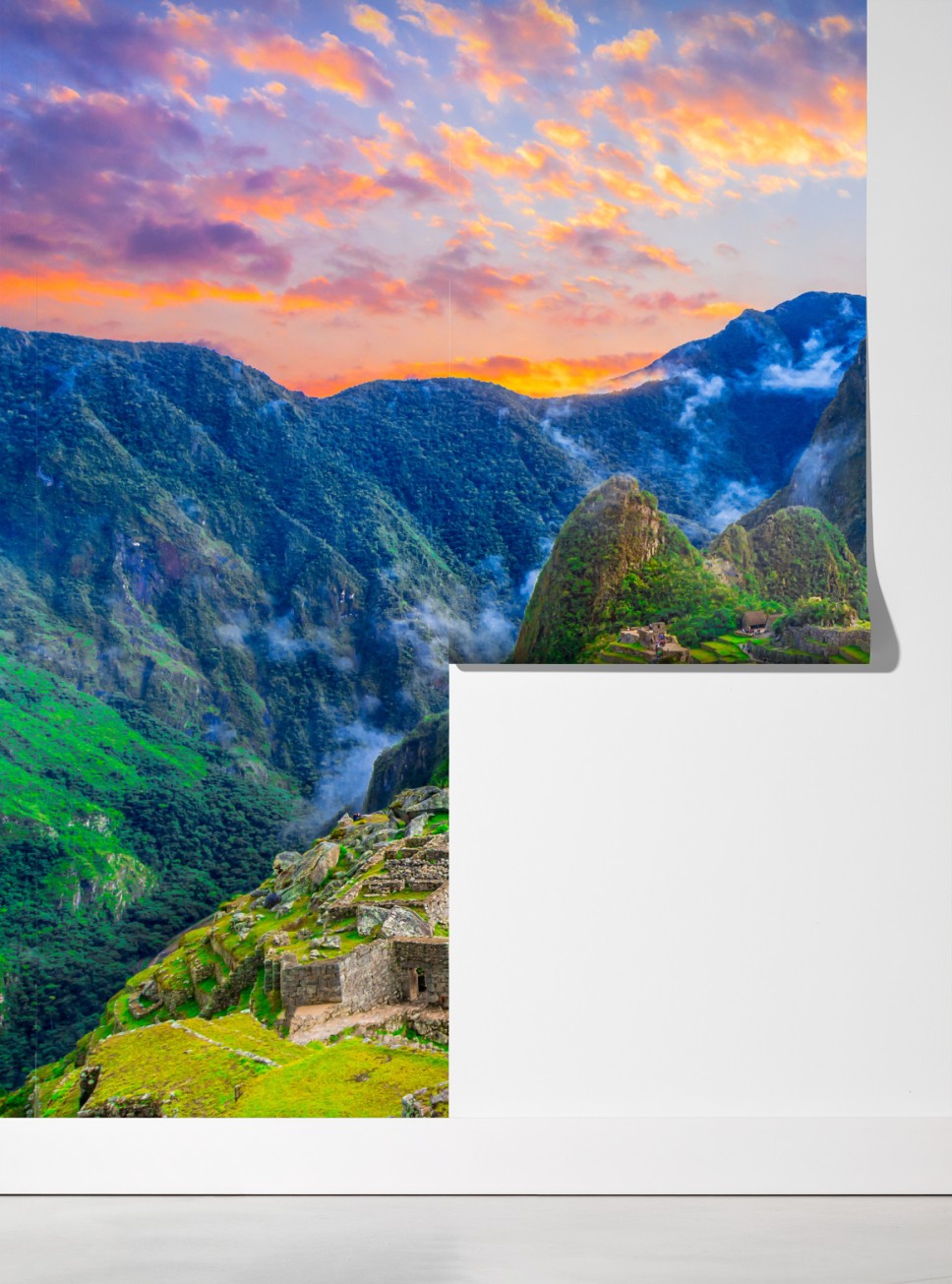 Fototapete sonnenuntergang über Machu Picchu antike Inka-zitadelle