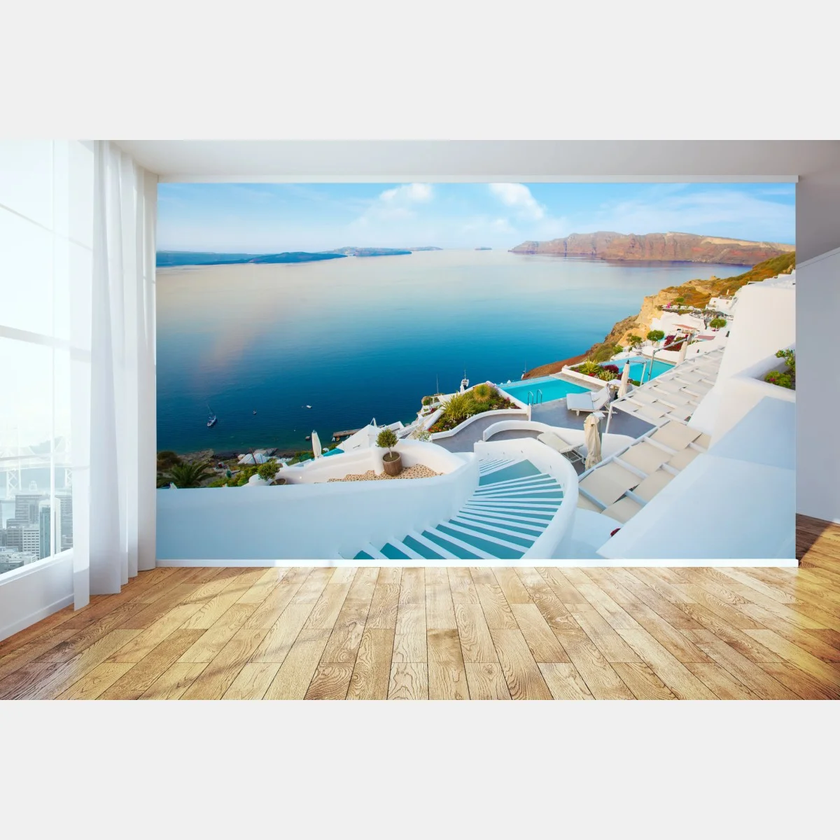 Fototapete Santorini meerblick terrasse