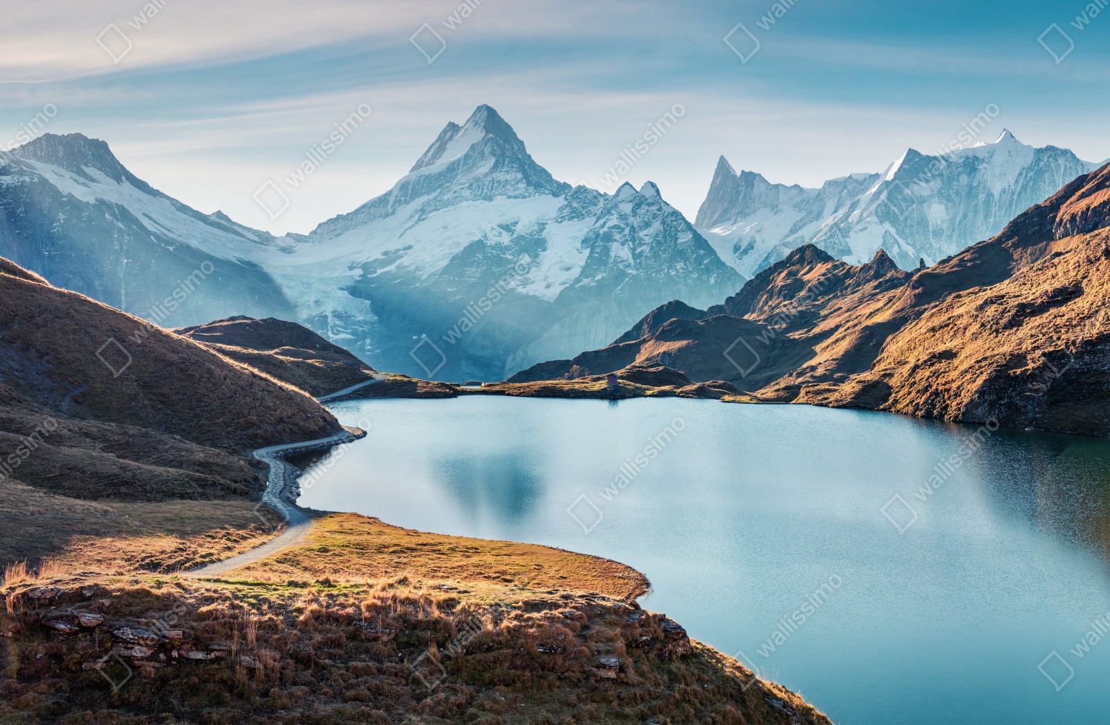 Fototapete sonnenaufgang über Bachalpsee, Schweizer Alpen – Wallnifity®