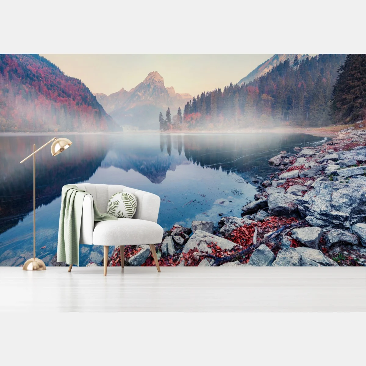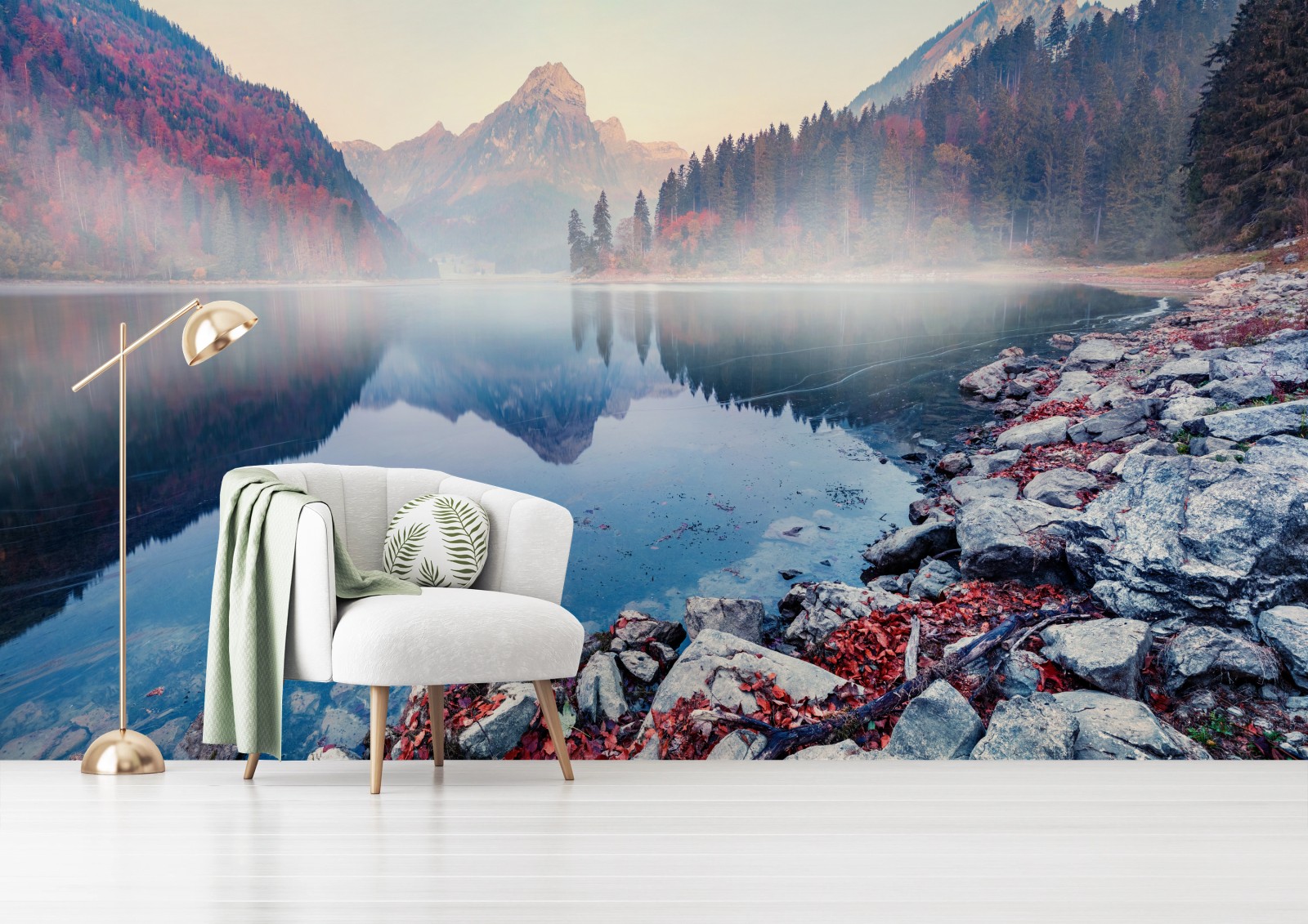 Fototapete Nebliger herbstmorgen am Obersee, Schweizer Alpen