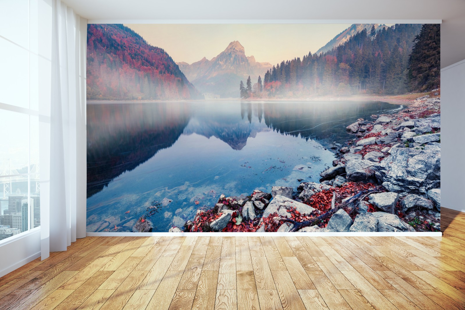 Fototapete nebliger herbstmorgen am Obersee, Schweizer Alpen
