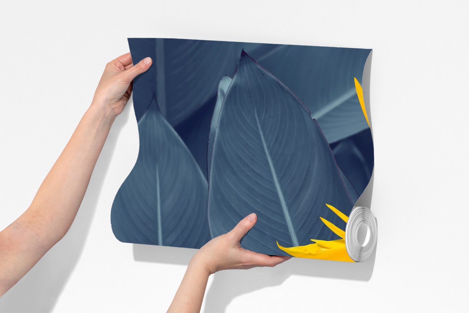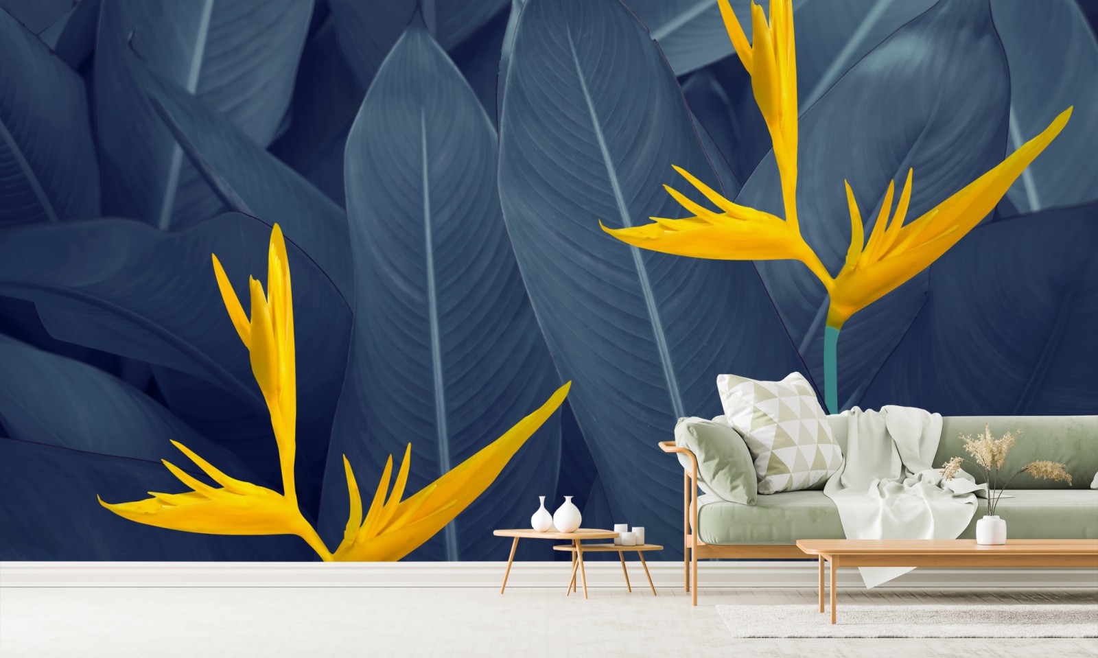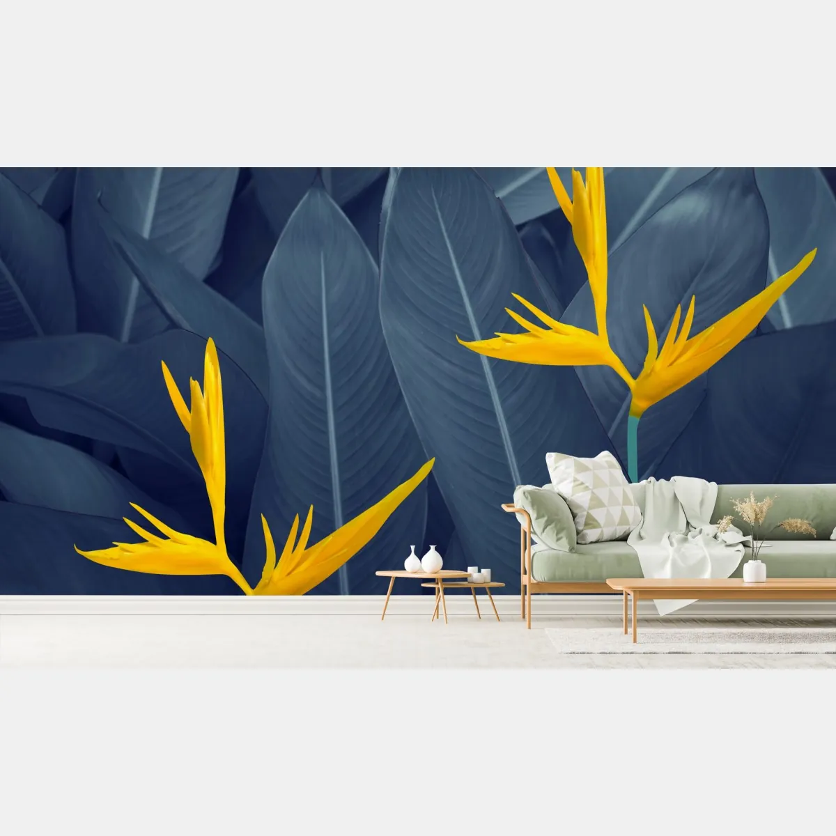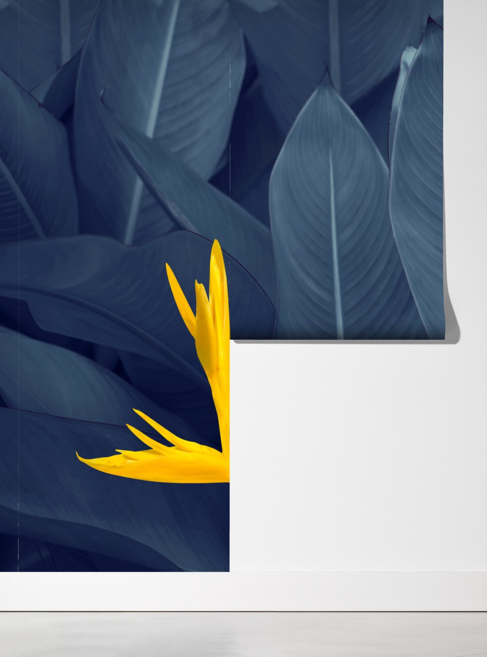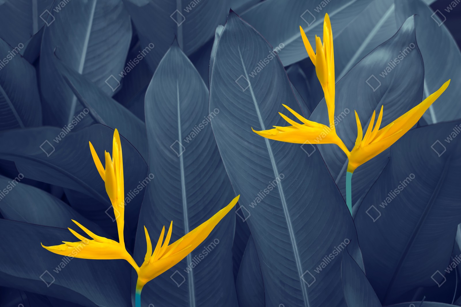 Fototapete gelbe strelitzie auf blauen blättern – Wallnifity®