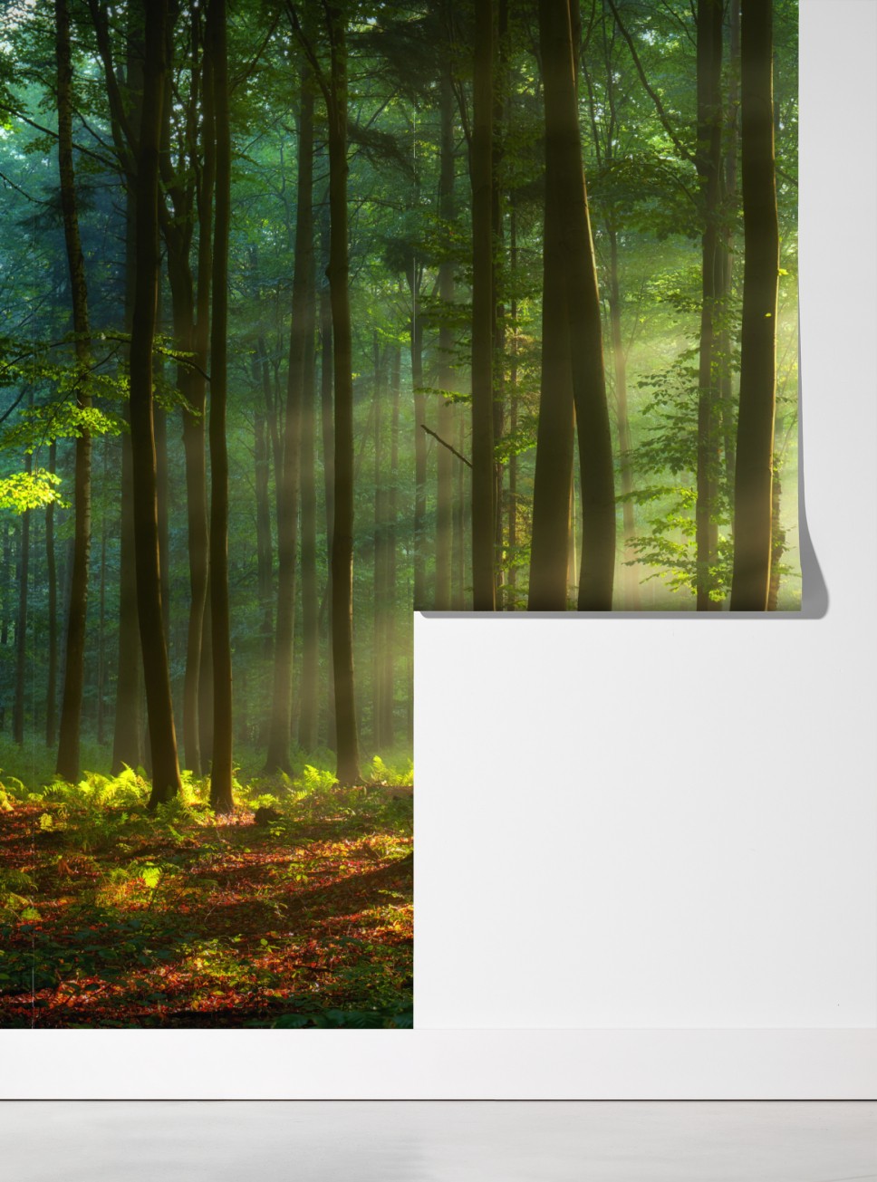 Fototapete sonnenbeschienener morgenwald