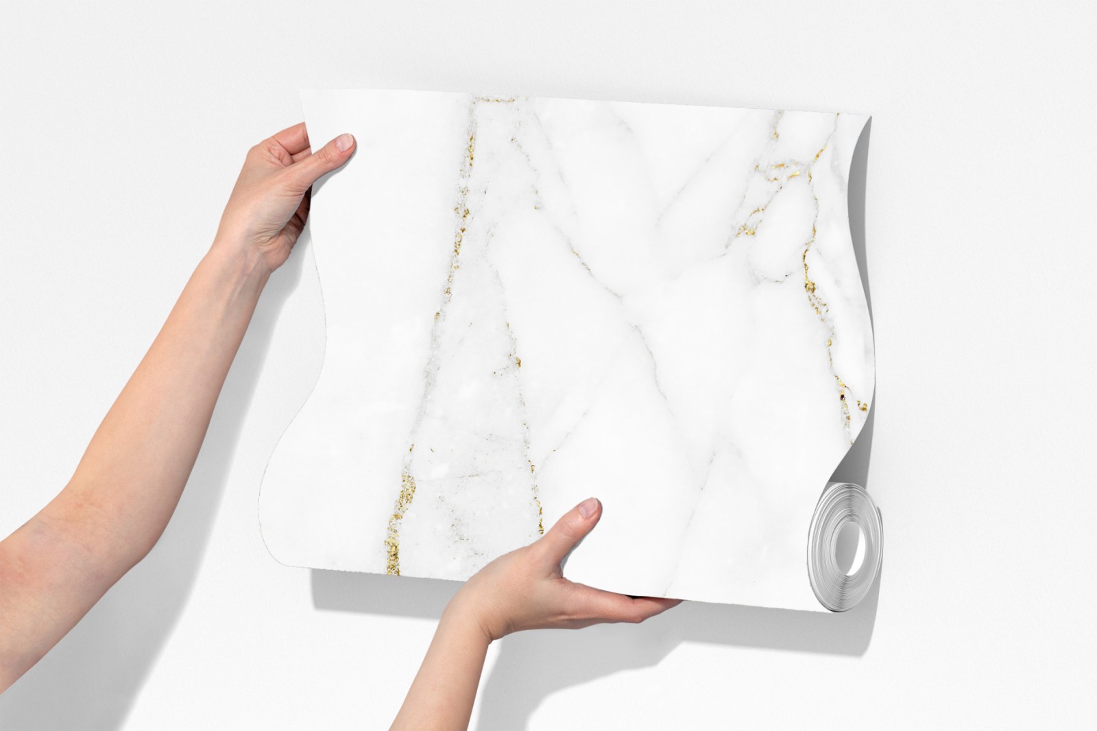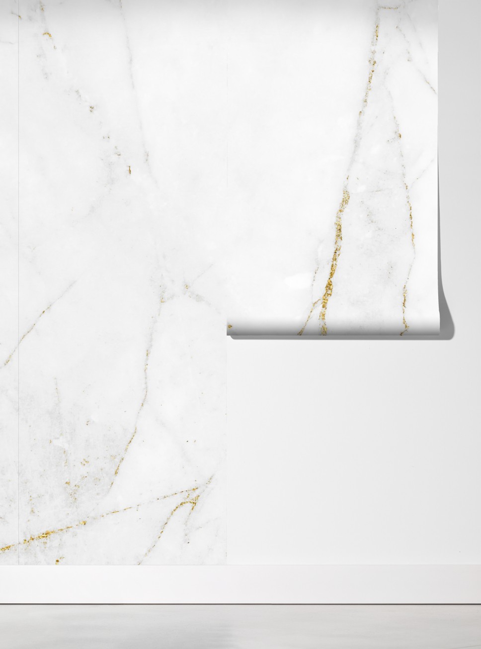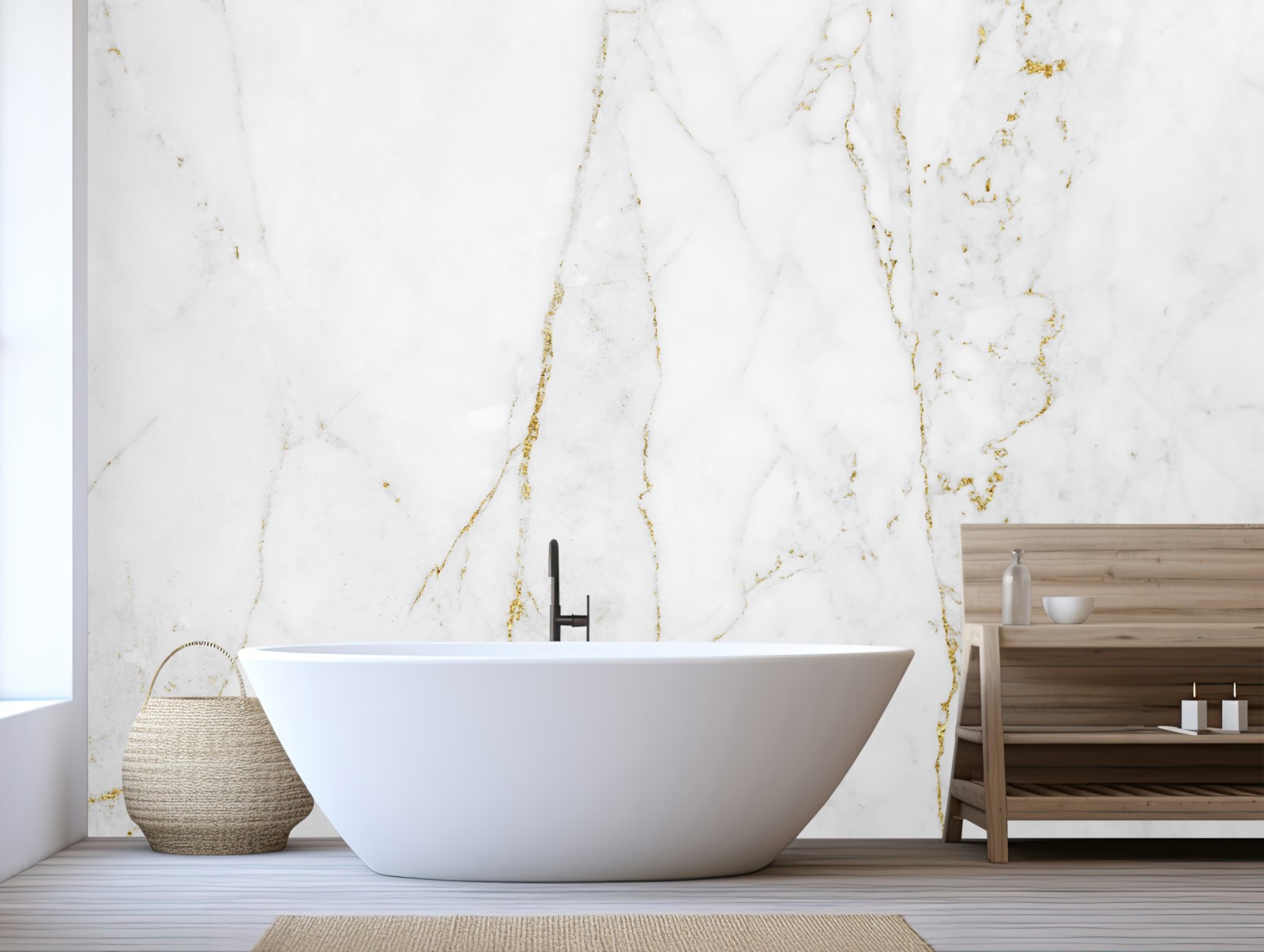 Verleihen Sie Ihrem Raum zeitlose Eleganz mit weißem Marmor und dezenten goldenen Adern.