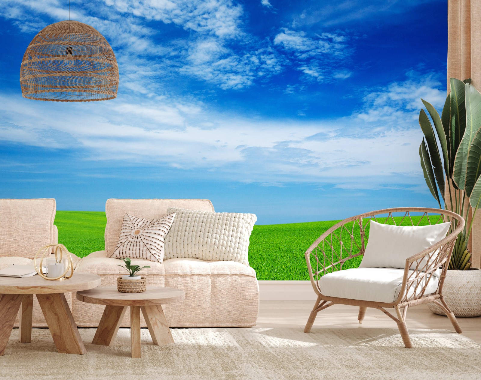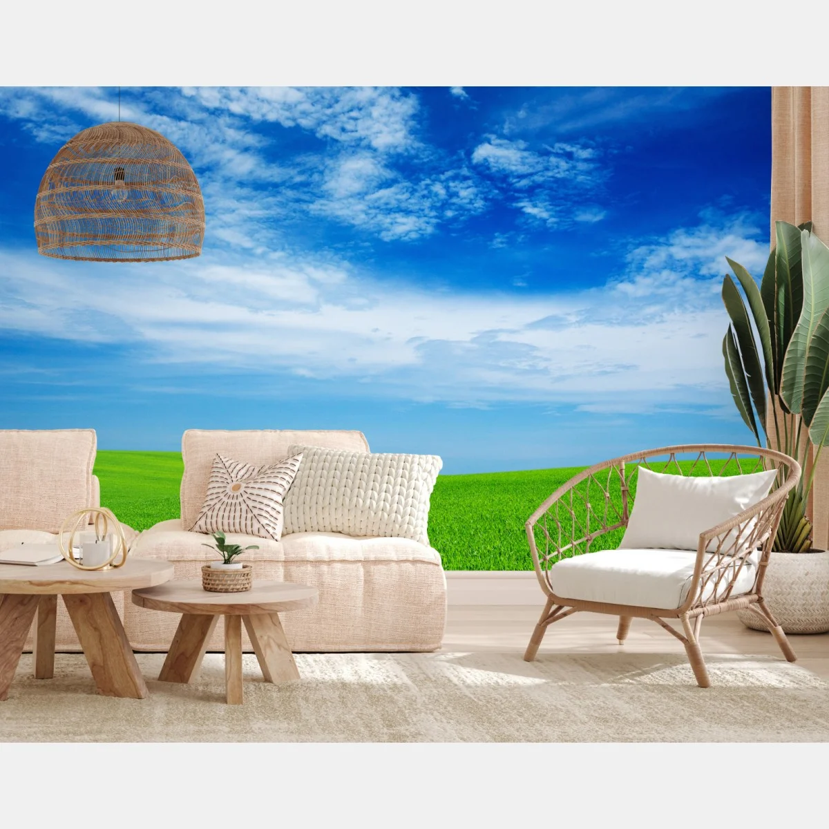 Fototapete Grüne wiese unter blauem himmel