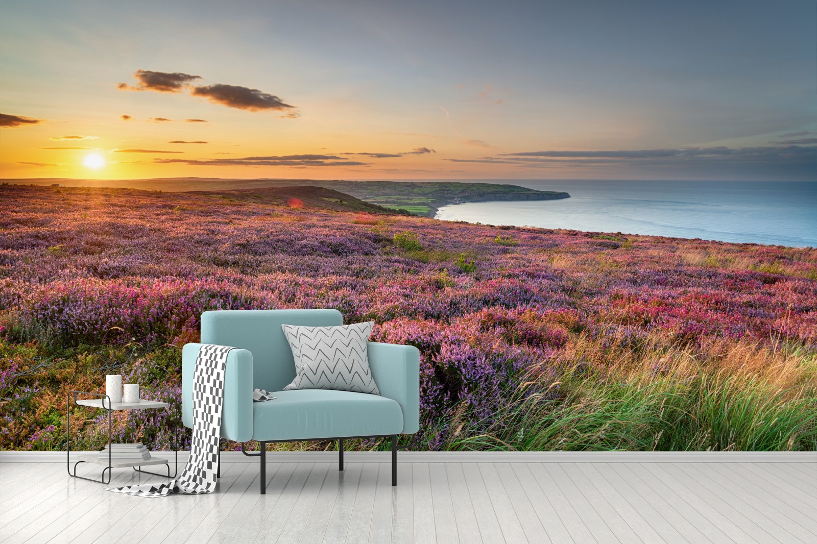 Fototapete Sonnenuntergang über der heide auf den North York Moors