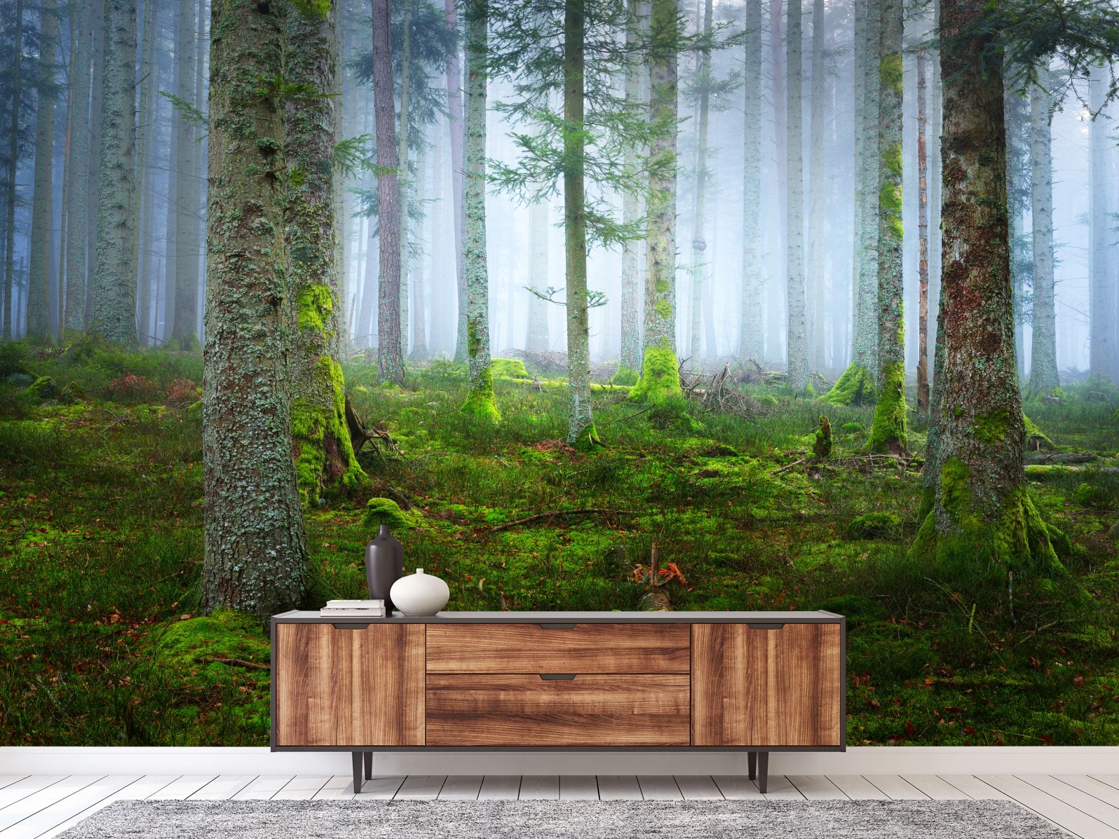 Fototapete Nebliger kiefernwald aus dem Elsass