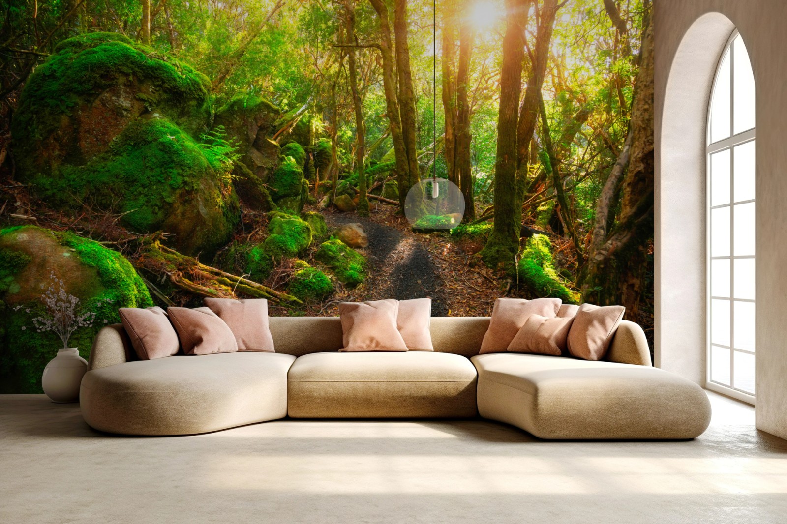 Fototapete Sonniger pfad im regenwald der Tasman-Halbinsel, Tasmanien
