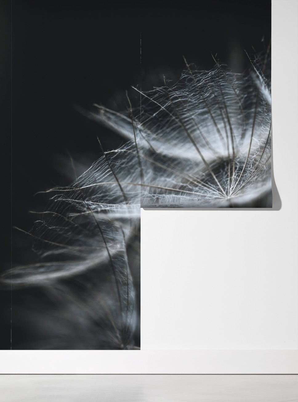 Fototapete zarte löwenzahnsamen in monochrom – Wallnifity®
