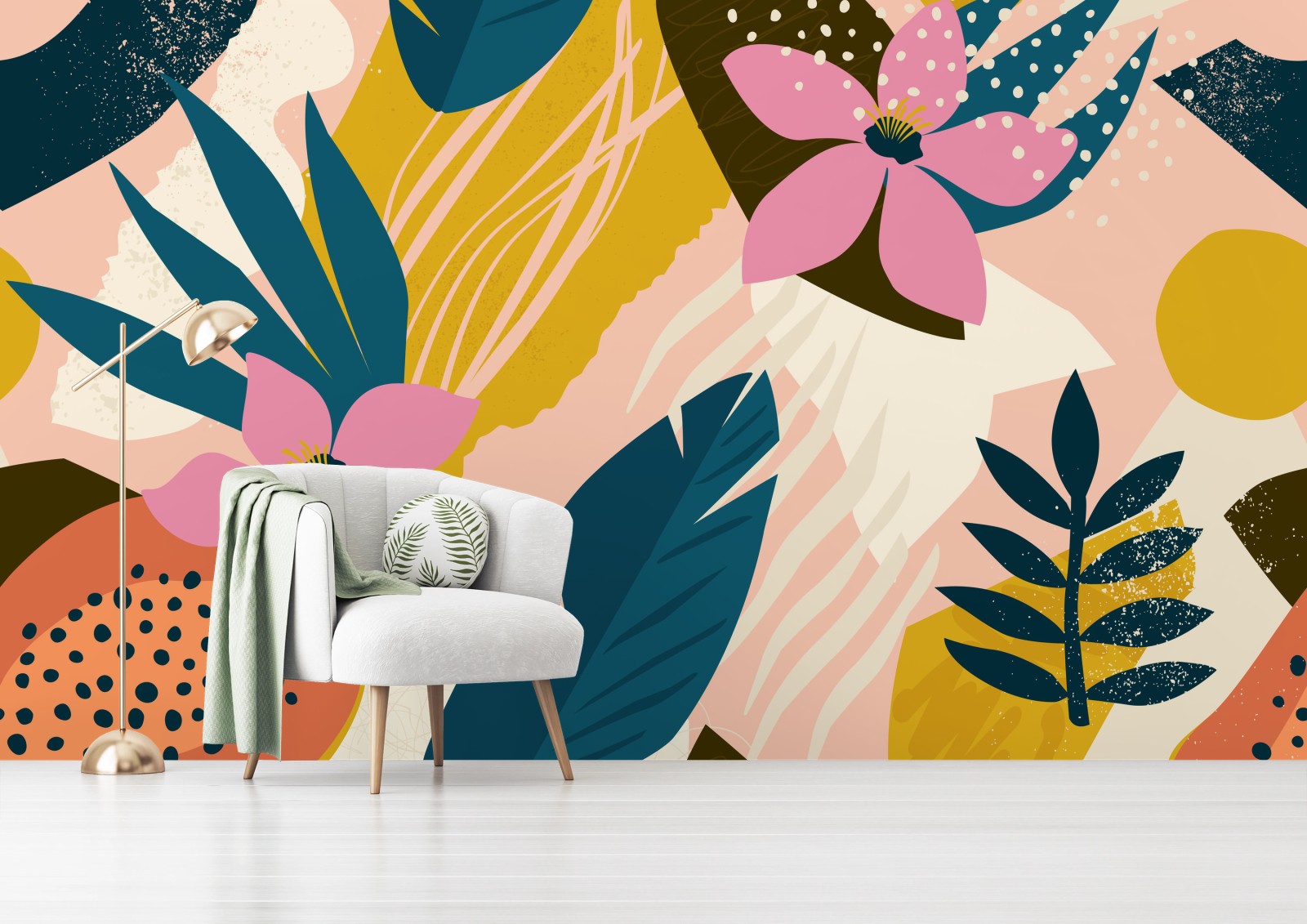 Bringen Sie lebendige tropische Energie an Ihre Wände mit diesem farbenfrohen abstrakten Blumenmotiv. Kräftige Formen und eine moderne Farbpalette schaffen einen lebhaften Blickfang in jedem Raum.MehrWeniger