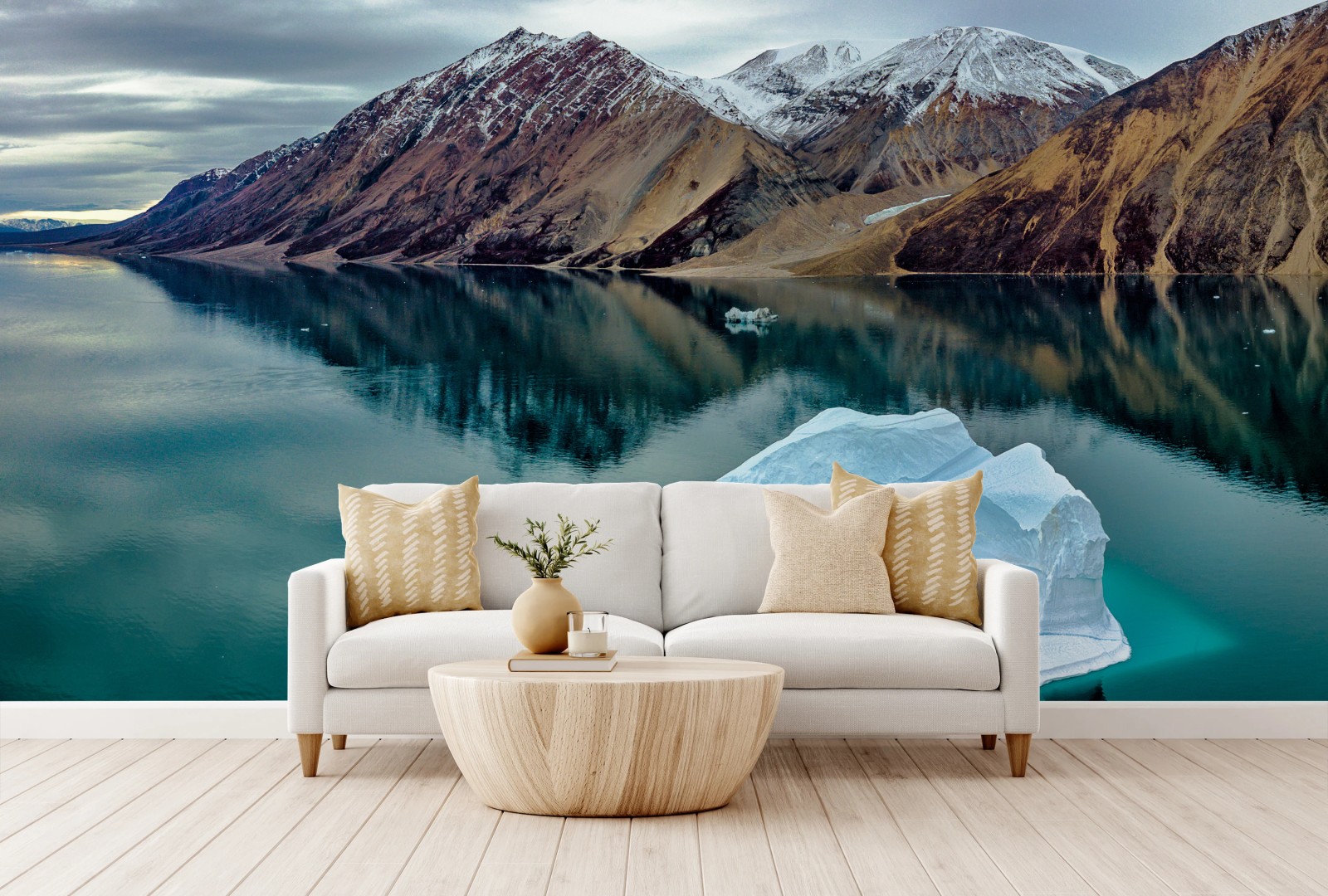 Fototapete Eisberg und bergreflexionen in türkisfarbenem wasser