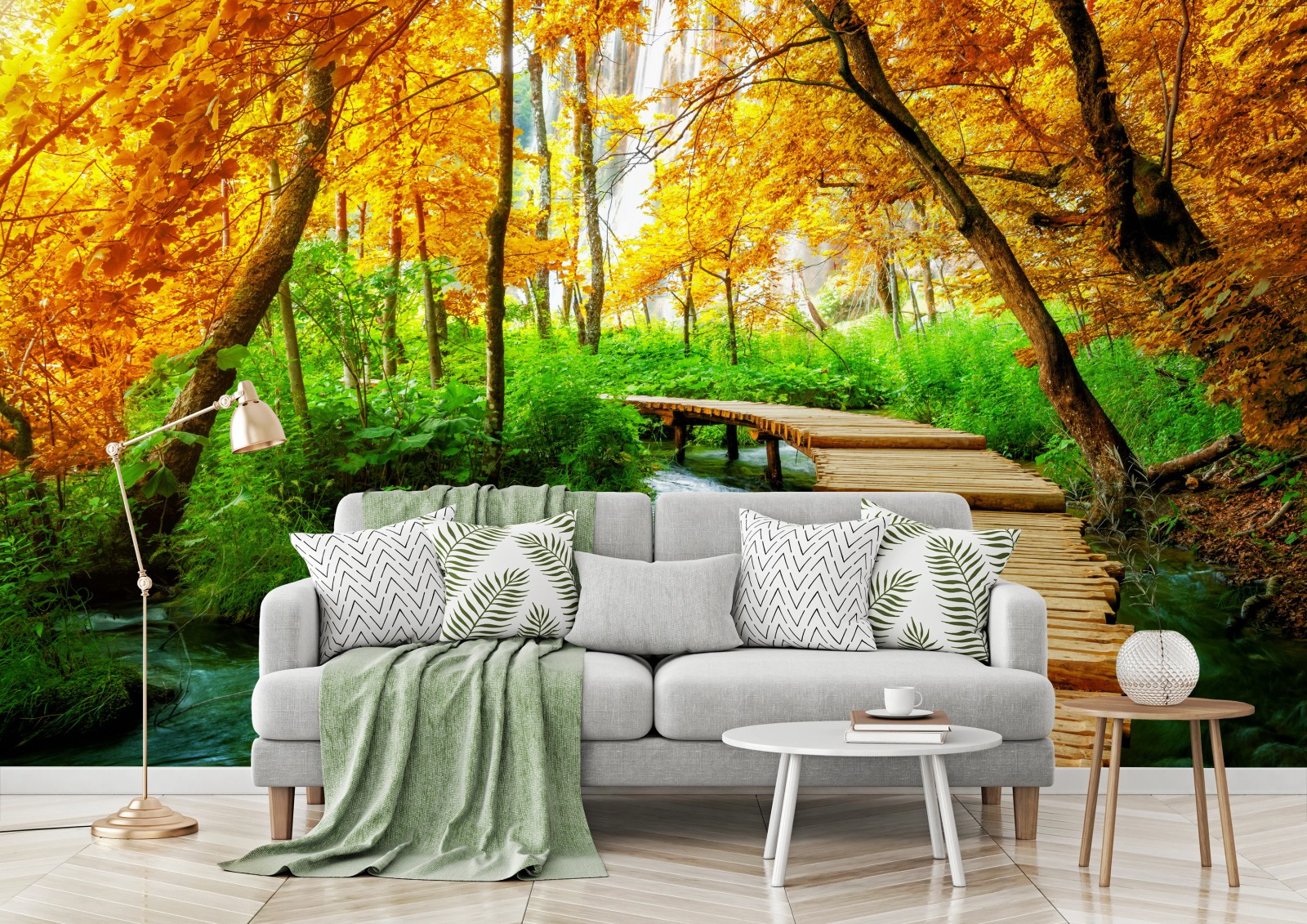 Fototapete Goldener steg durch den wald bei Plitvicer Seen