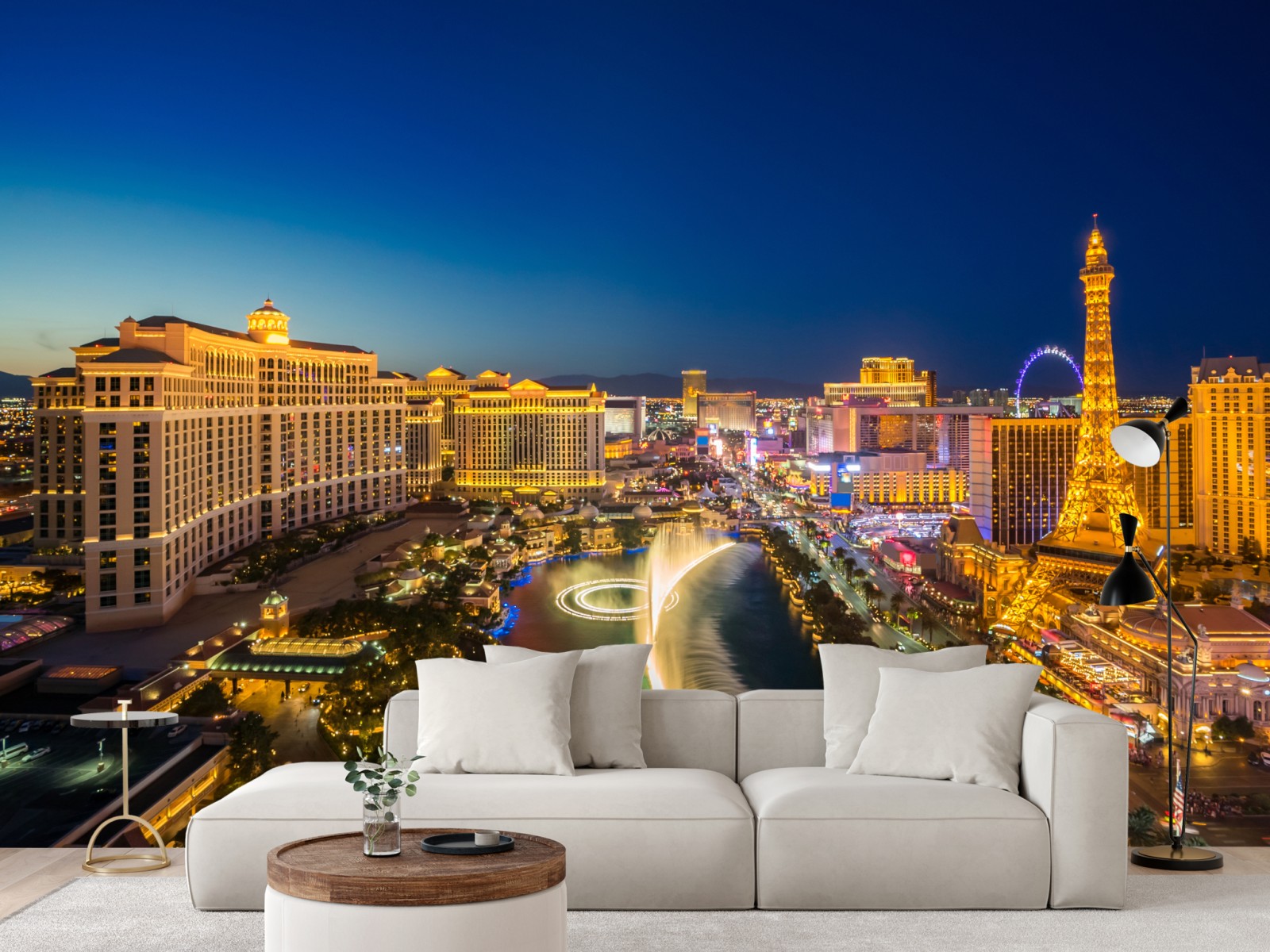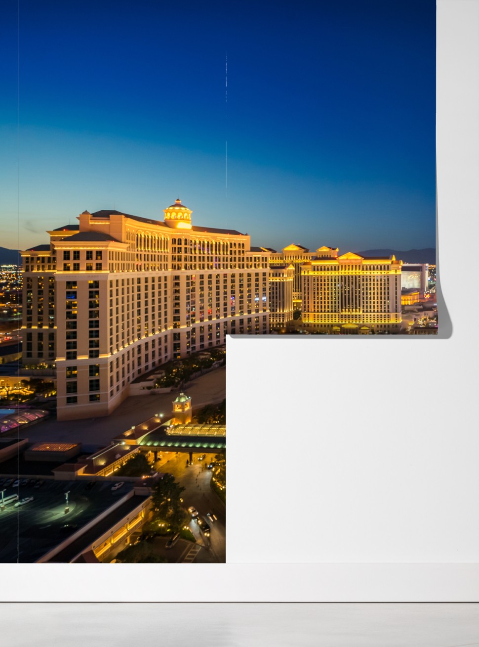 Erleben Sie die lebendige Atmosphäre von Las Vegas mit dieser beeindruckenden nächtlichen Luftaufnahme, die jedem Raum urbanen Glamour verleiht.