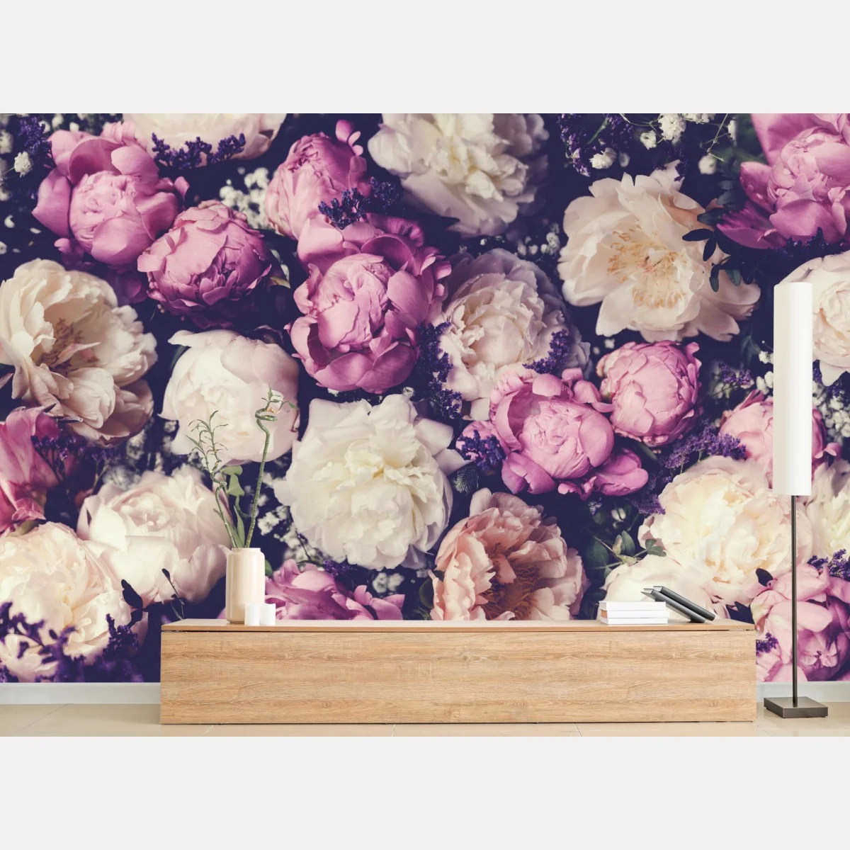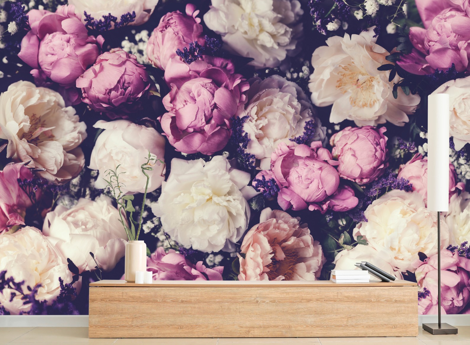 Fototapete Romantischer pfingstrosenstrauß in pastelltönen