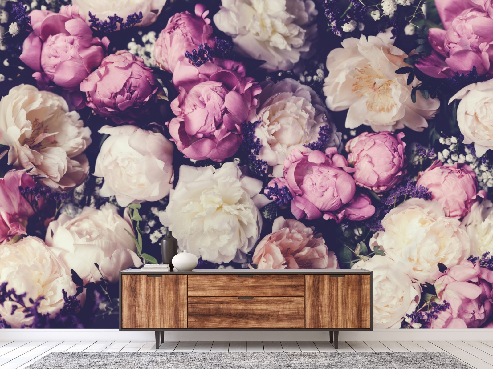 Fototapete romantischer pfingstrosenstrauß in pastelltönen