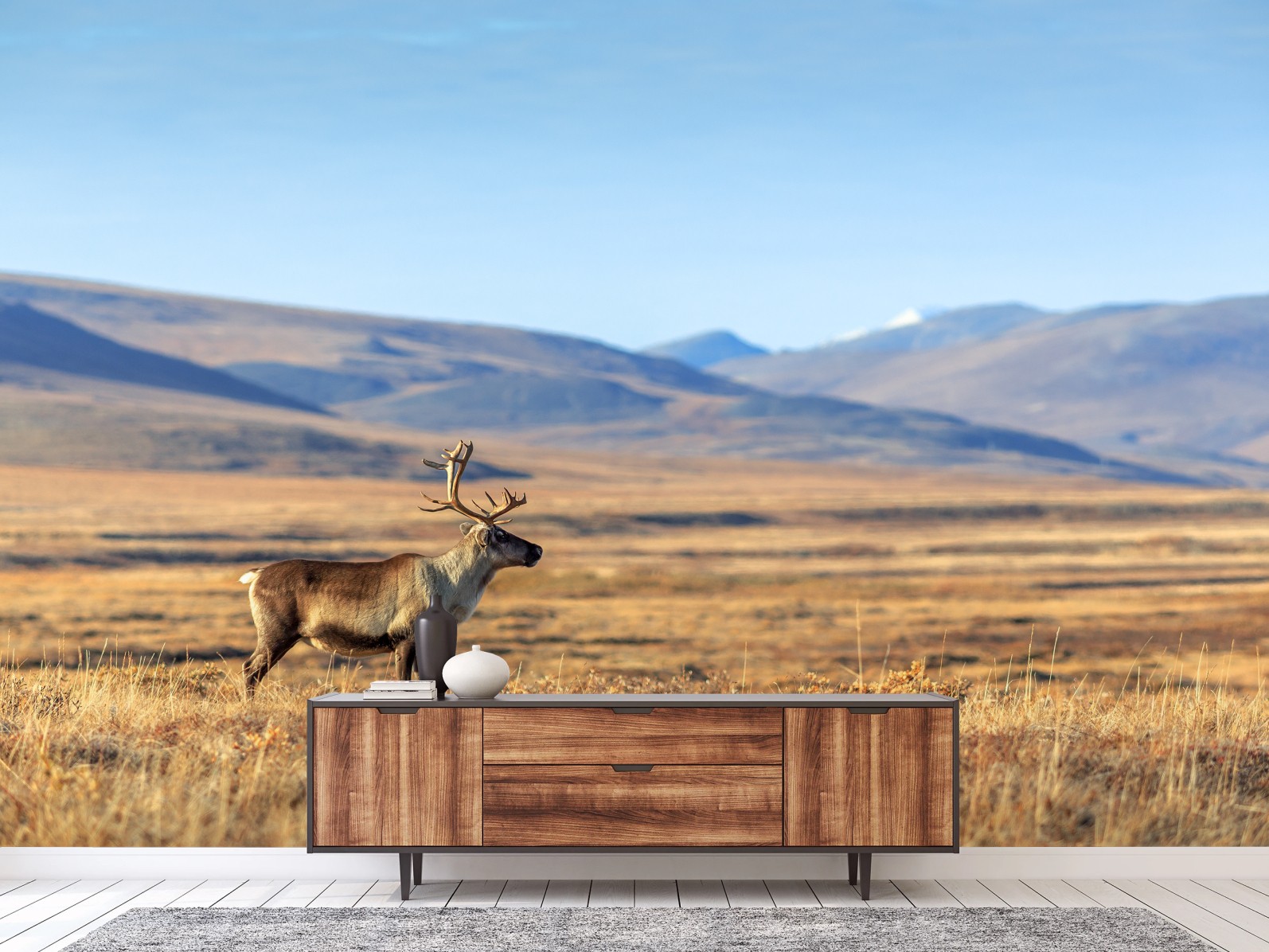 Fototapete Einsames rentier in der Tundra von Tschukotka