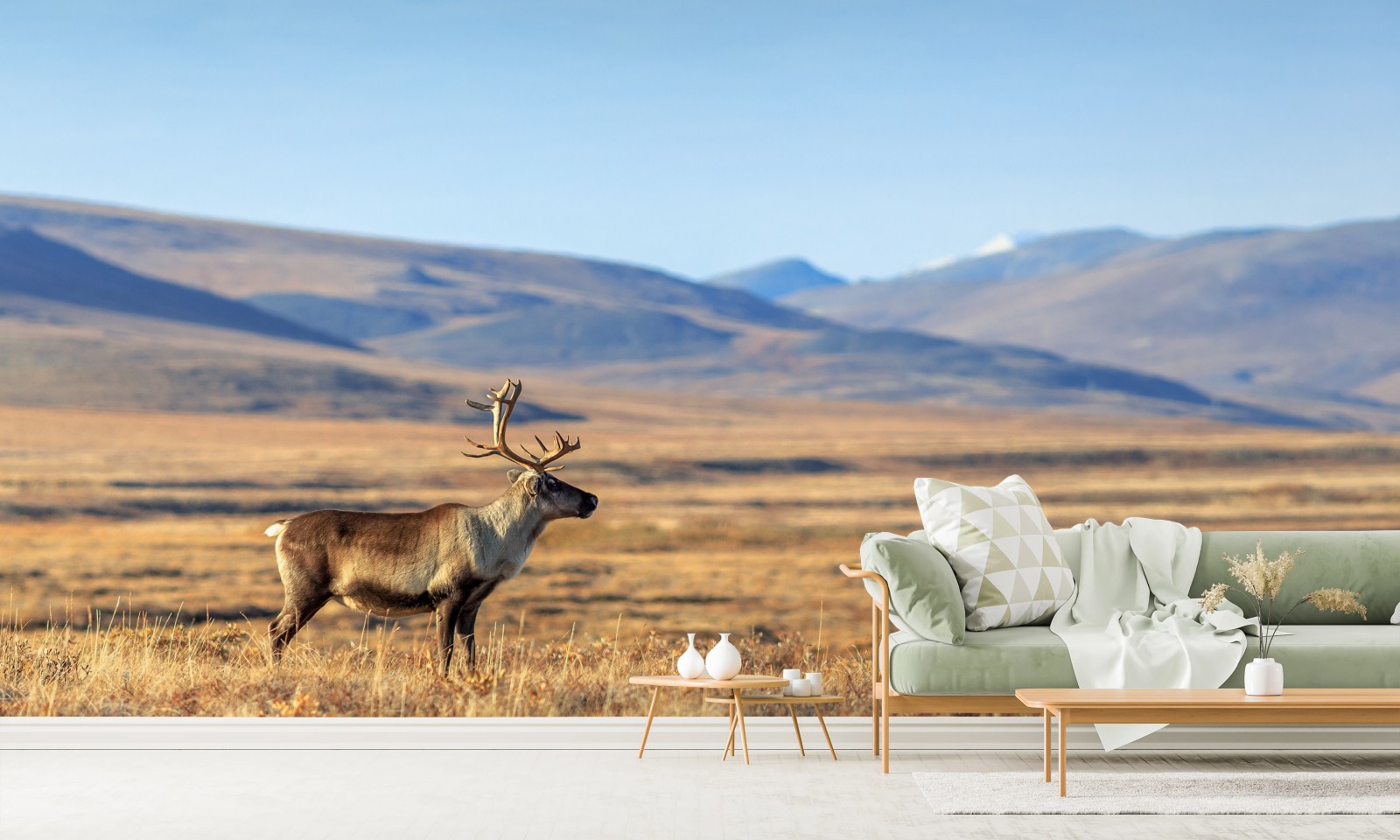 Fototapete Einsames rentier in der Tundra von Tschukotka