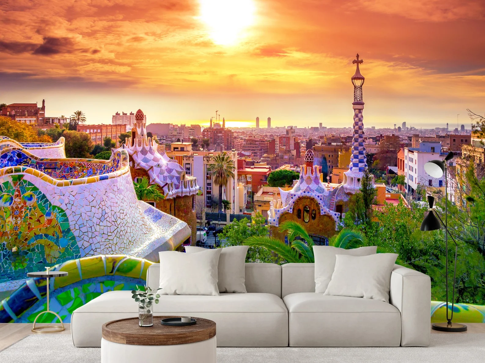 Fototapete Sonnenuntergang über Park Güell in Barcelona