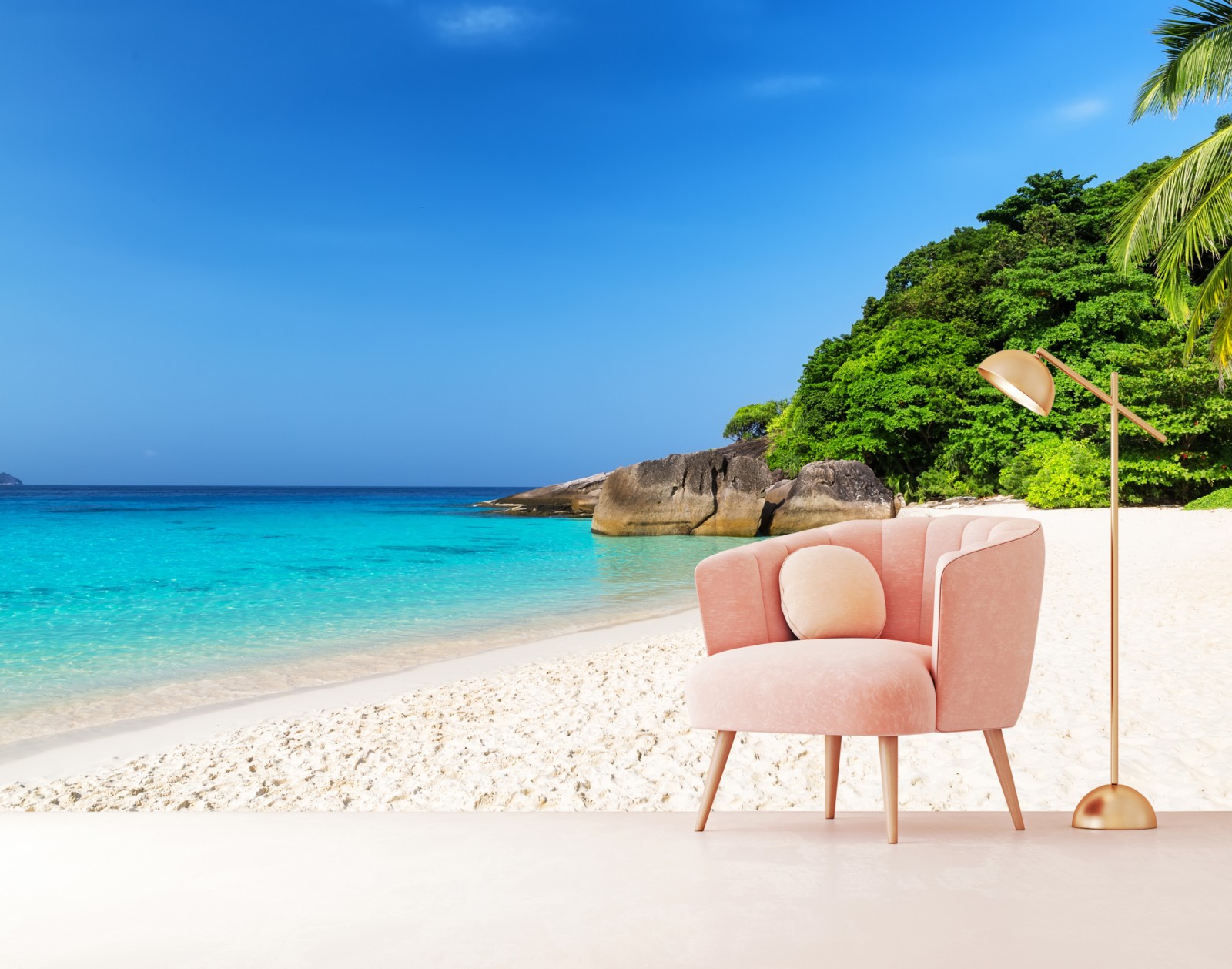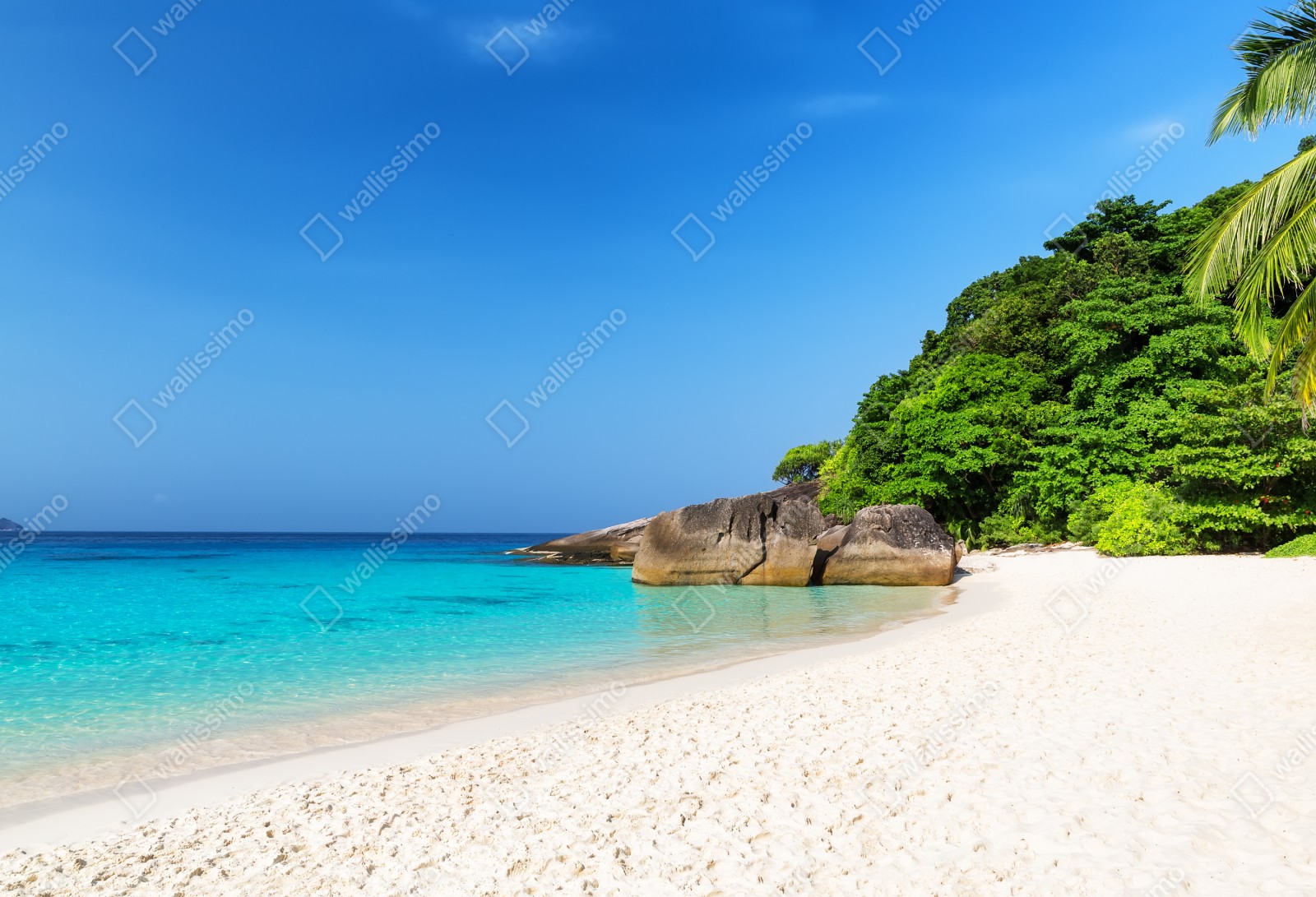 Bringen Sie die ruhige Schönheit der Similan Islands in Ihren Raum mit dieser lebendigen Strandaufnahme mit türkisfarbenem Wasser, feinem Sand und üppigem Grün.
