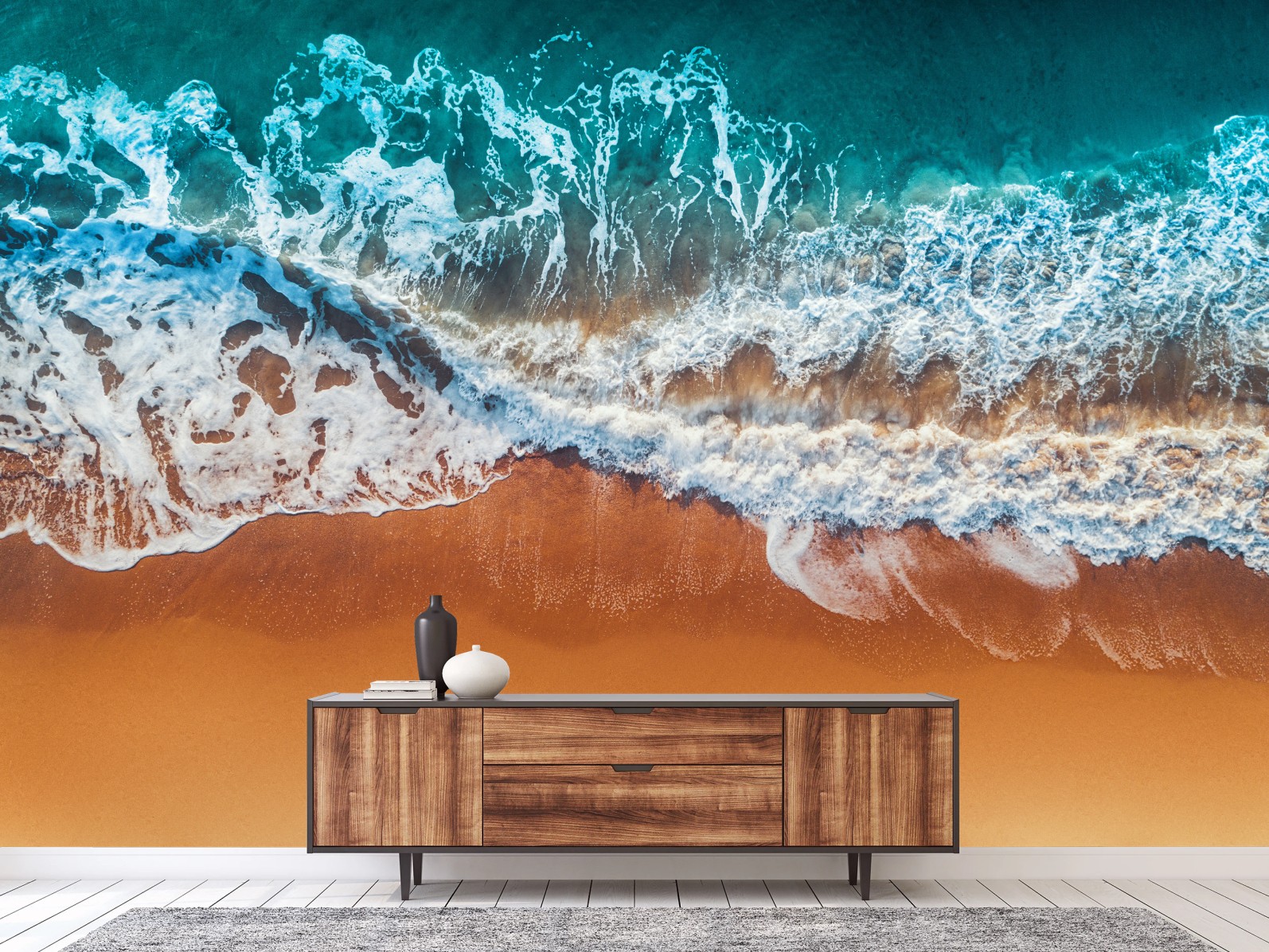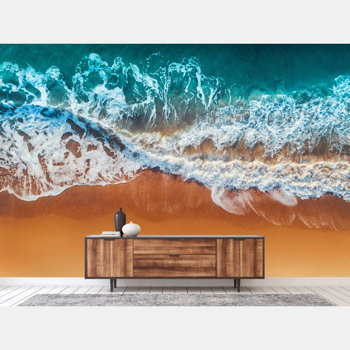 Fototapete Luftaufnahme türkisfarbener wellen an einem sandstrand