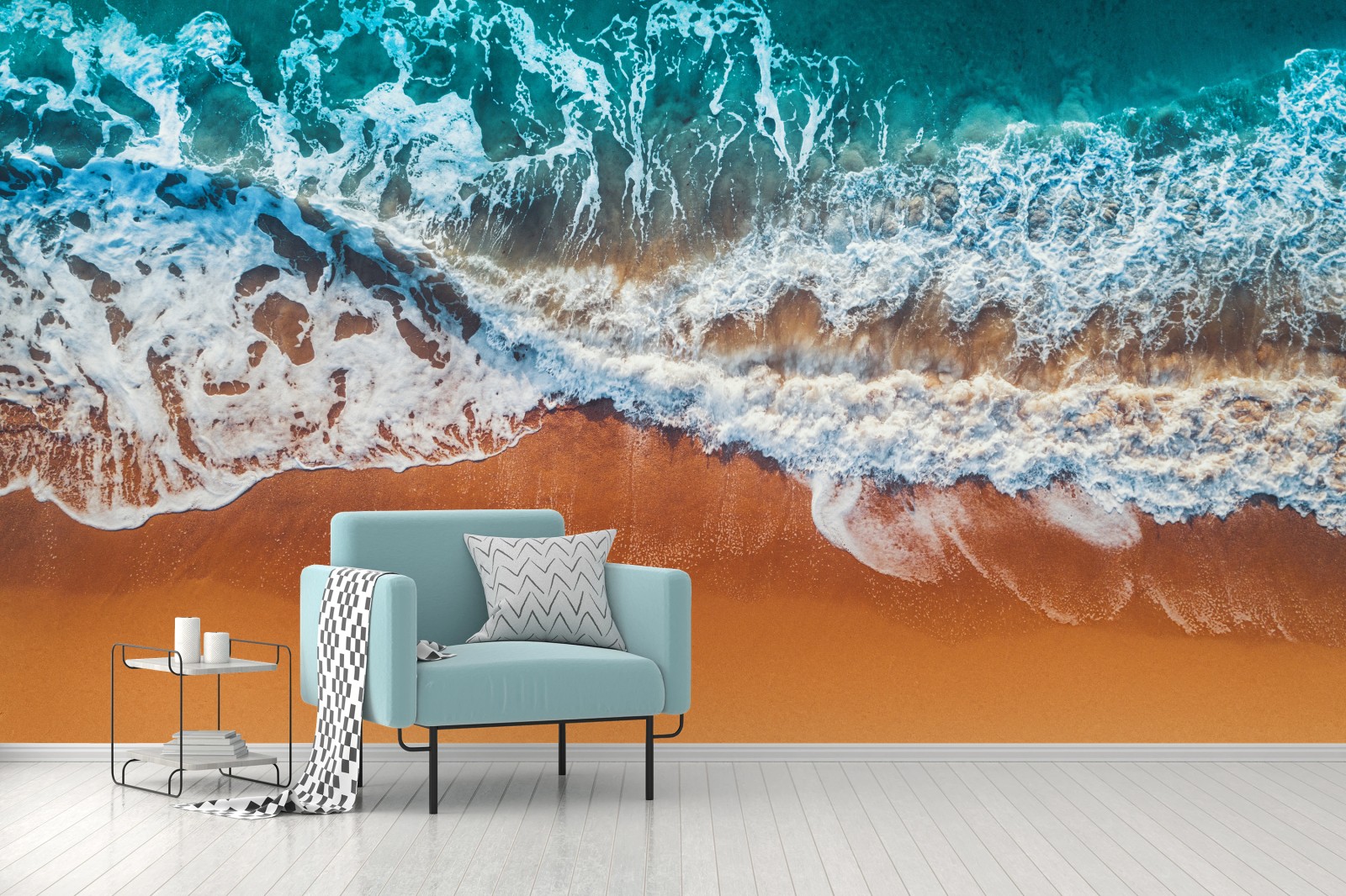 Fototapete Luftaufnahme türkisfarbener wellen an einem sandstrand