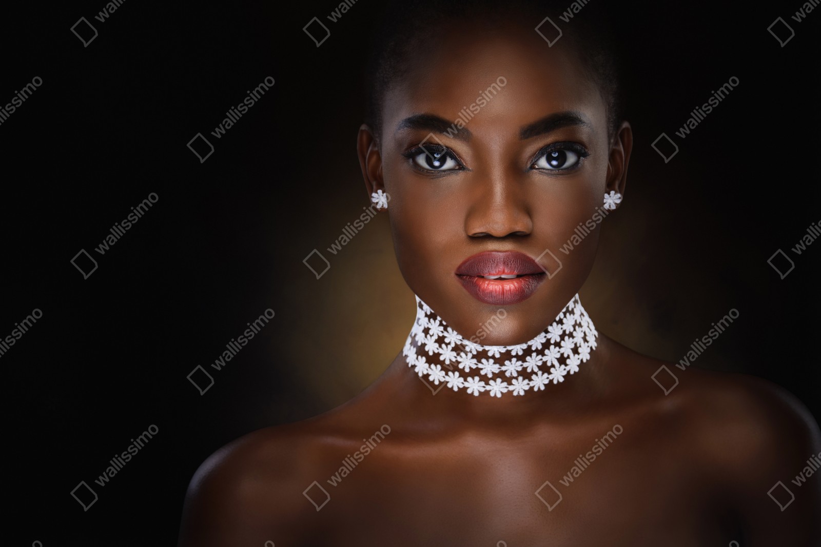 Fototapete elegantes porträt einer frau mit blumenhalskette