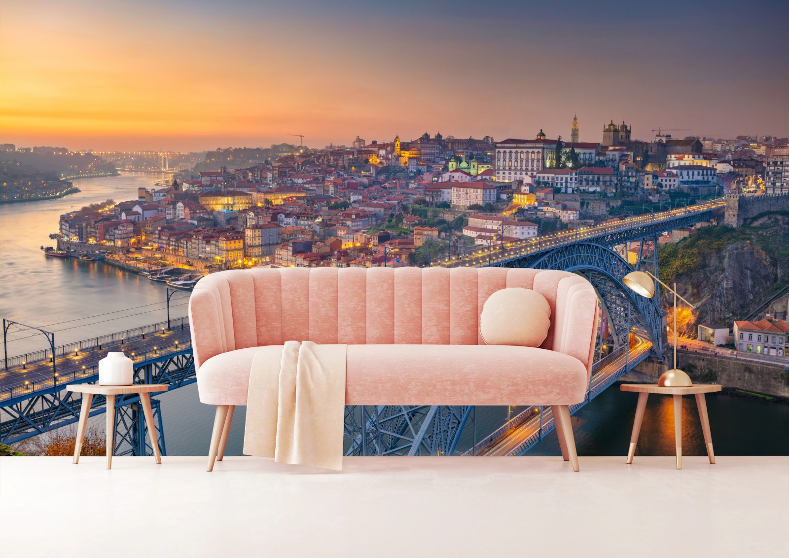 Fototapete Porto skyline bei dämmerung mit Dom Luís I