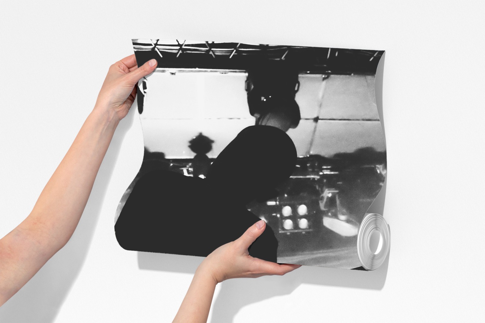 Verleihen Sie Ihren Wänden Energie mit dieser eindrucksvollen schwarzweiß-silhouette eines Gitarristen, perfekt um eine kraftvolle Atmosphäre zu schaffen.