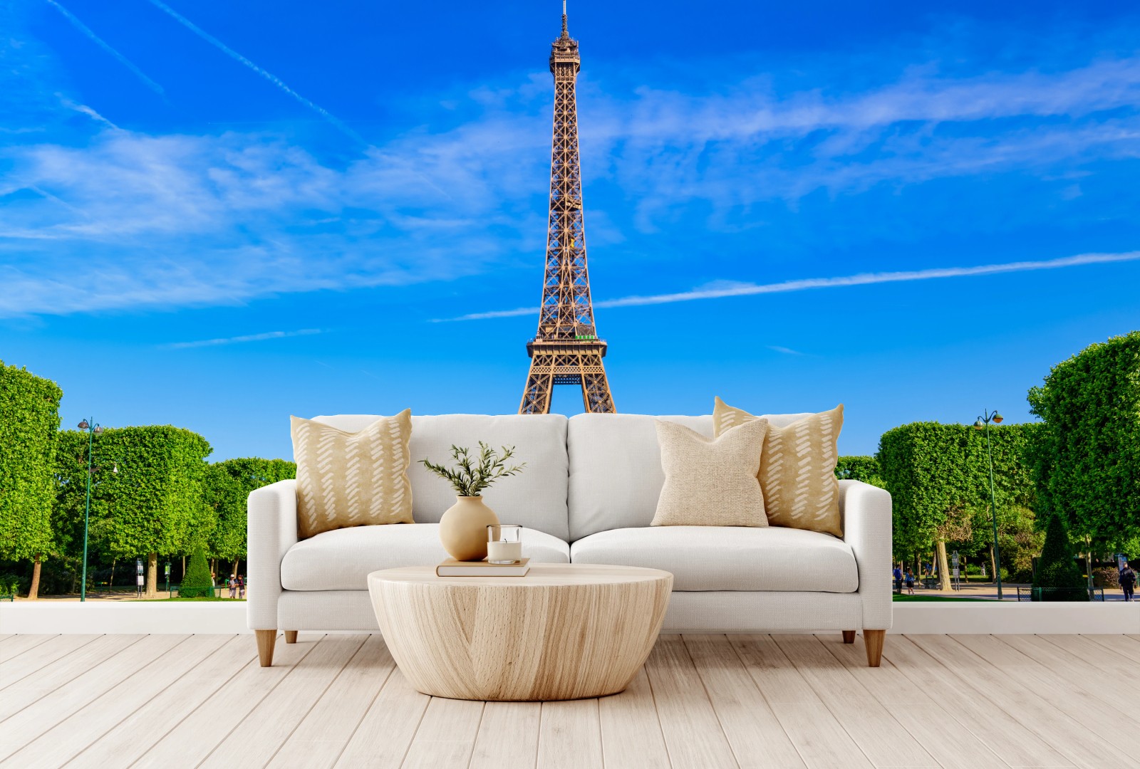Fototapete Eiffelturm am Champ de Mars, lebendige pariser skyline